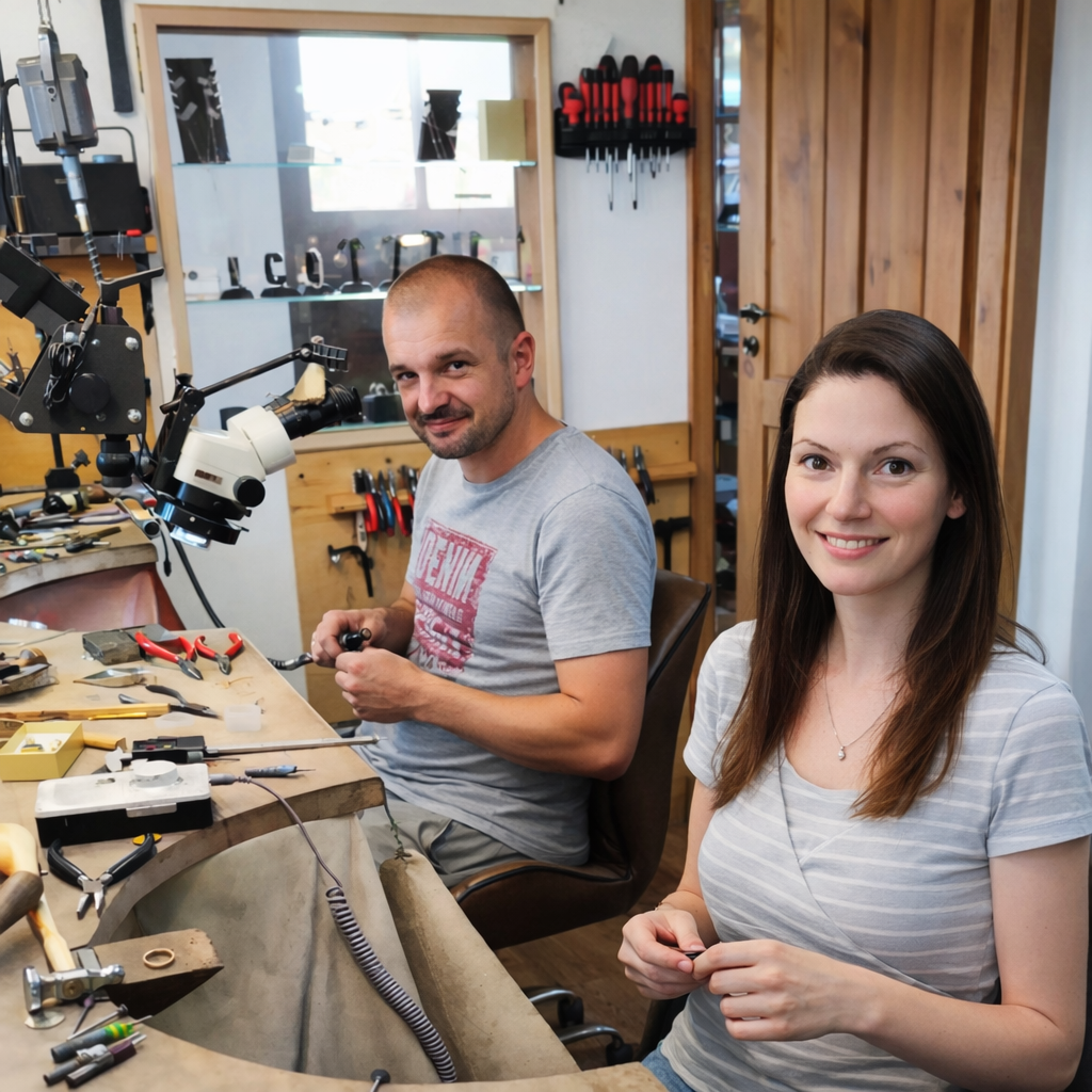 Kto je to Šperkovnica? My manželia Lackovci, teda Janka a Róbert sme zlatníci telom aj dušou. V našej zlatníckej dielni vyrábame šperky so srdcom. Súčasťou našej dielne je predajňa, kde máme naše výrobky na predaj. Radi vám tu poradíme alebo zmeriame veľkosť, poprípade prekonzultujeme možné zmeny, úpravy. Komunikujete priamo s výrobcom, teda s nami. Keďže sme len dvaja a spolu vyrábame, predávame a robíme aj všetku agendu okolo, prosíme vás si dopredu zjednať termín, aby sme si na vás vyhradili čas. Sme zlatníci, preto je samozrejmé, že vám vaše šperky opravíme, upravíme, vyčistíme, veľa razí aj na počkanie.