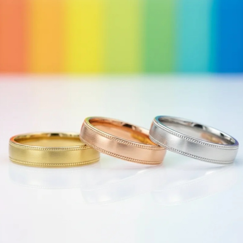 Materiál: Obrúčky vyrábame vo všetkých farbách zlata, 14 karátové zlato. Jednotlivé modely je možné si prispôsobiť našimi doplnkovými produktami, ktoré nájdete na spodku našej stránky. Je možné zmeniť povrch obrúčky, ale pridať diamant.