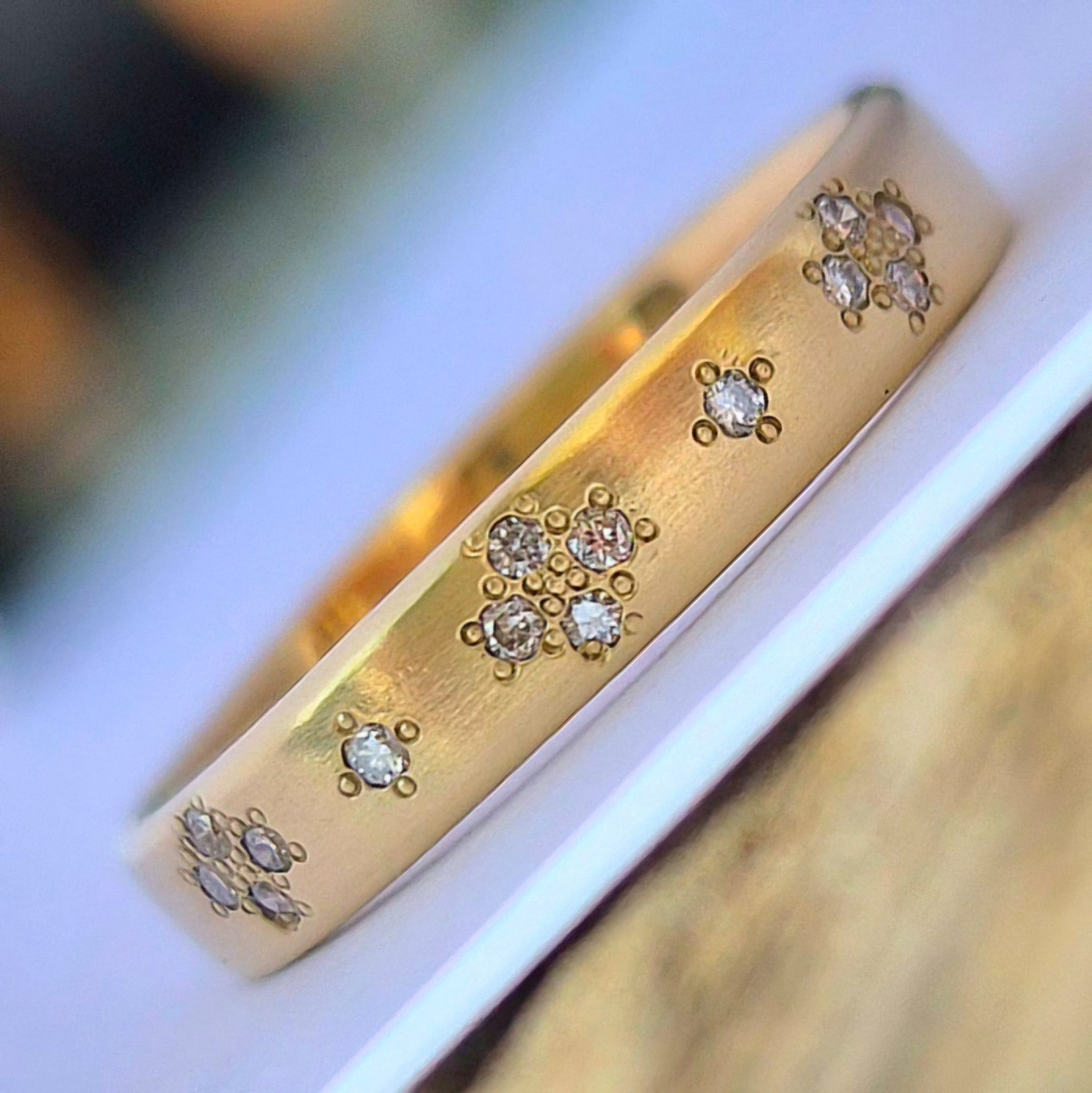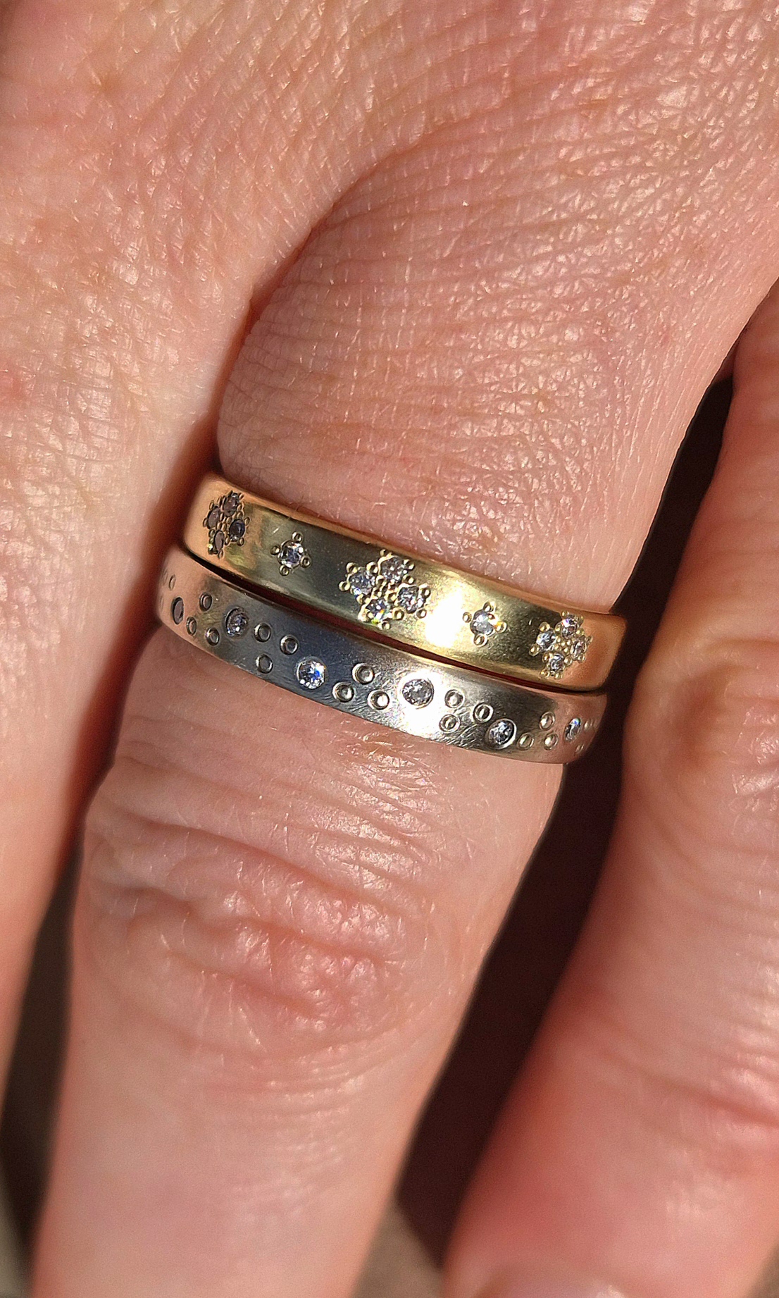 Materiál: Obrúčky vyrábame vo všetkých farbách zlata, 14 karátové zlato. Jednotlivé modely je možné si prispôsobiť našimi doplnkovými produktami, ktoré nájdete na spodku našej stránky. Je možné zmeniť povrch obrúčky, ale pridať diamant.