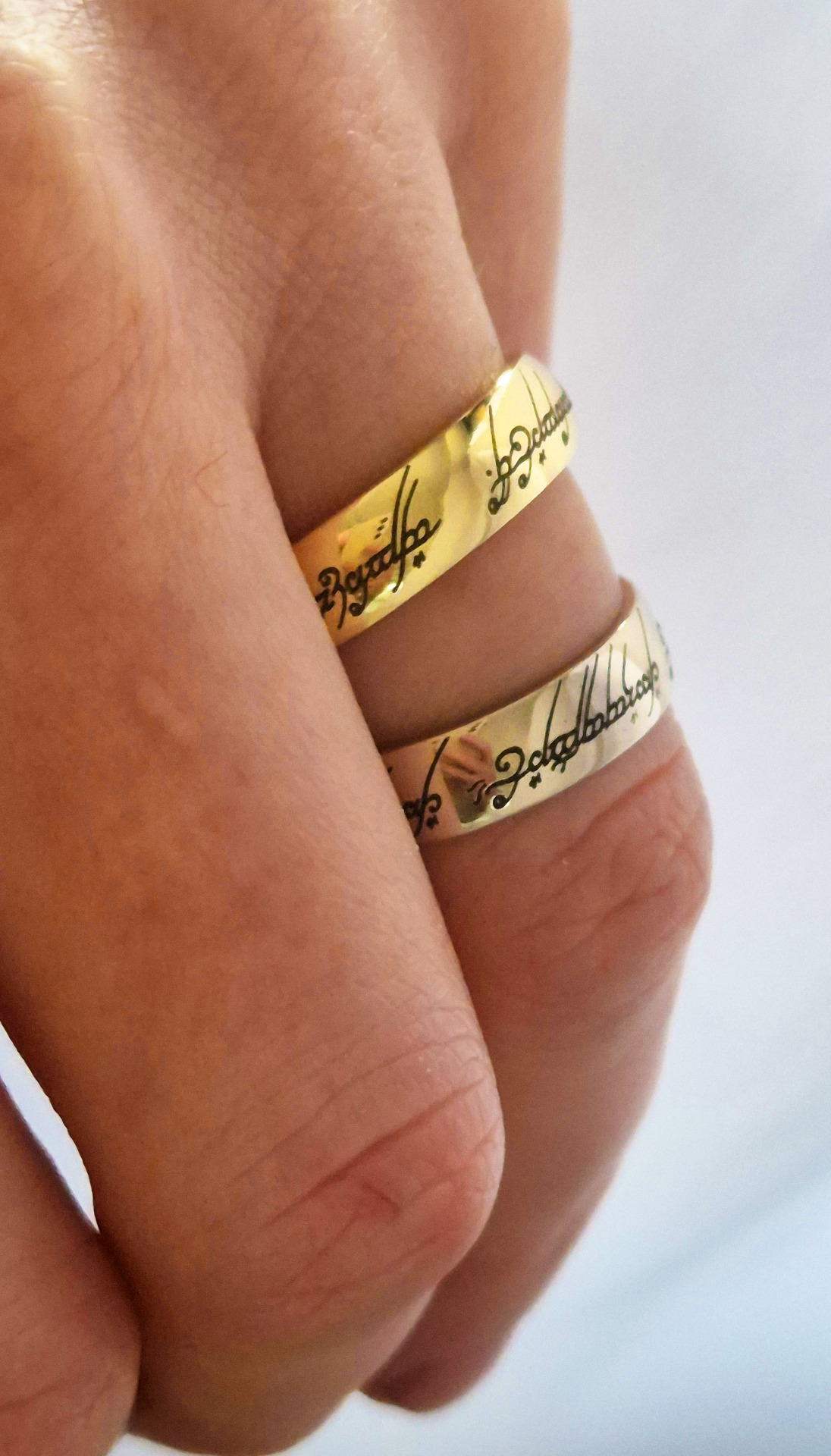 V cene obrúčok je gravírovanie do vnútra ponúkanými fontami. Ak by ste si chceli dať vygravírovať niečo špeciálne ako je odtlačok prsta, rukopis, alebo obrázok, táto služba je za príplatok. Zvoľte si produkt gravírovanie a vyberte si z možností. Gravírovanie laserom, teda čierna hlboká rytina je tiež za príplatok, pretože toto gravírovanie, teda vypaľovanie je náročnejšie aj na prípravu a čas. Ak chcete toto čierne gravírovanie, zvoľte si ku obrúčkam produkt gravírovanie laserom.