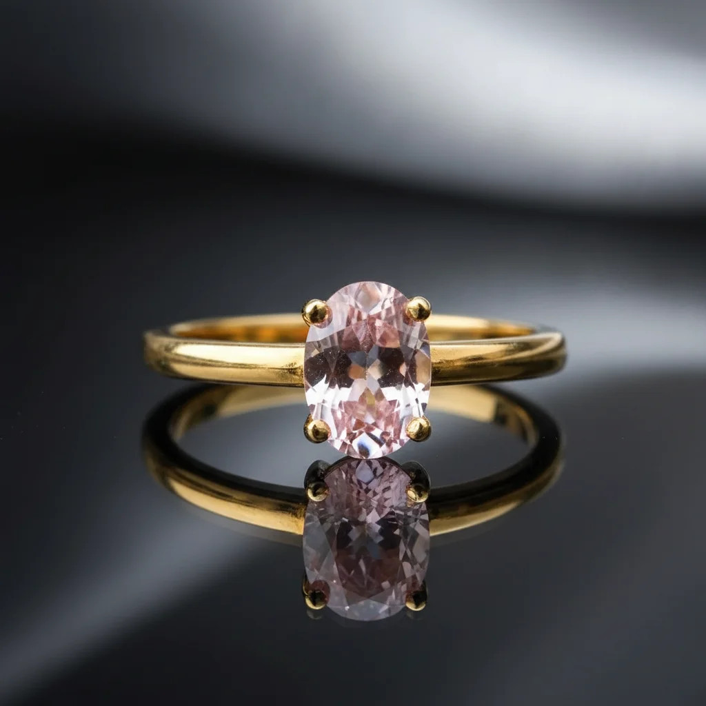 Zlatý prsteň s prírodným polodrahokamom Morganit. Tento kameň je jemne ružovej farby.