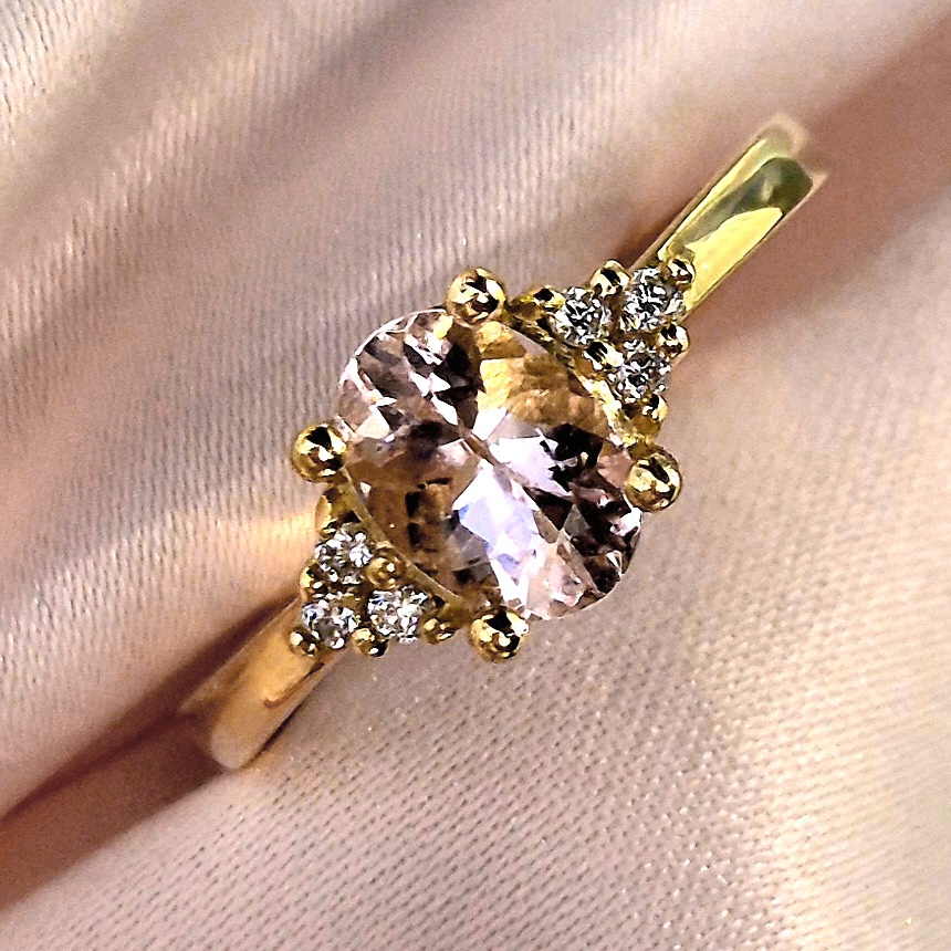 Morganit je prírodný, ako aj diamanty po stranách. K prsteňu dodávame firemný certifikát.
