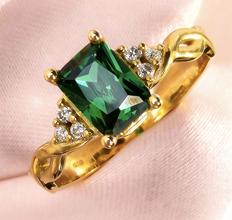 Kameň: Smaragd - laboratórne vytvorený, Diamanty laboratórne vytvorené.