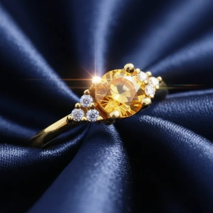 Zlatý prsteň s centrálnym kameňom prírodným žltým Zafírom, veľkosti 5mm.