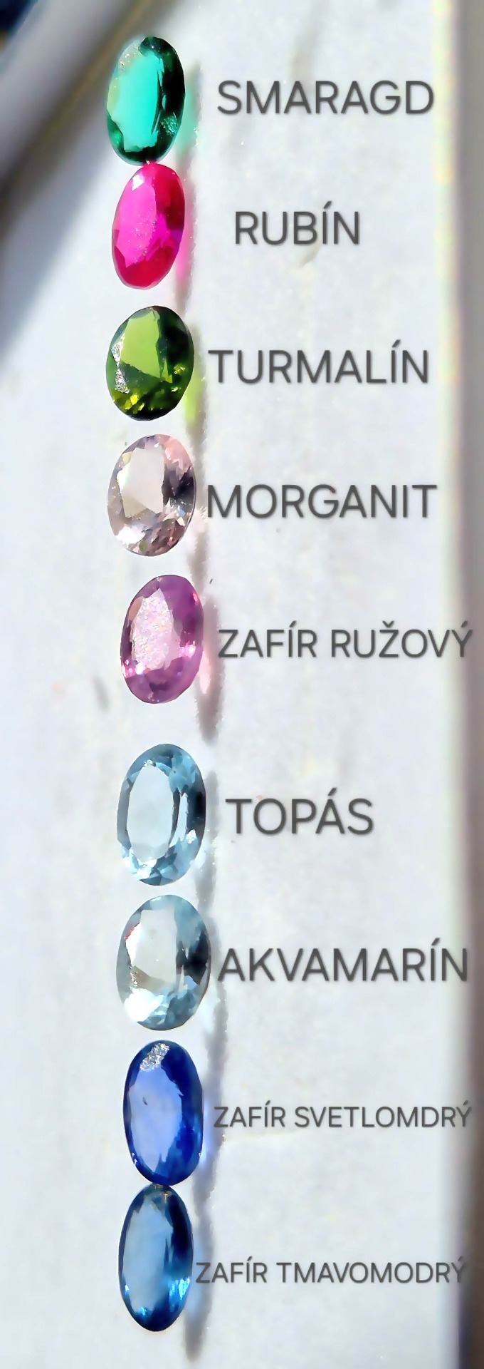 Prírodné kamene: Topás, Akvamarín, Turmalín, Zafír