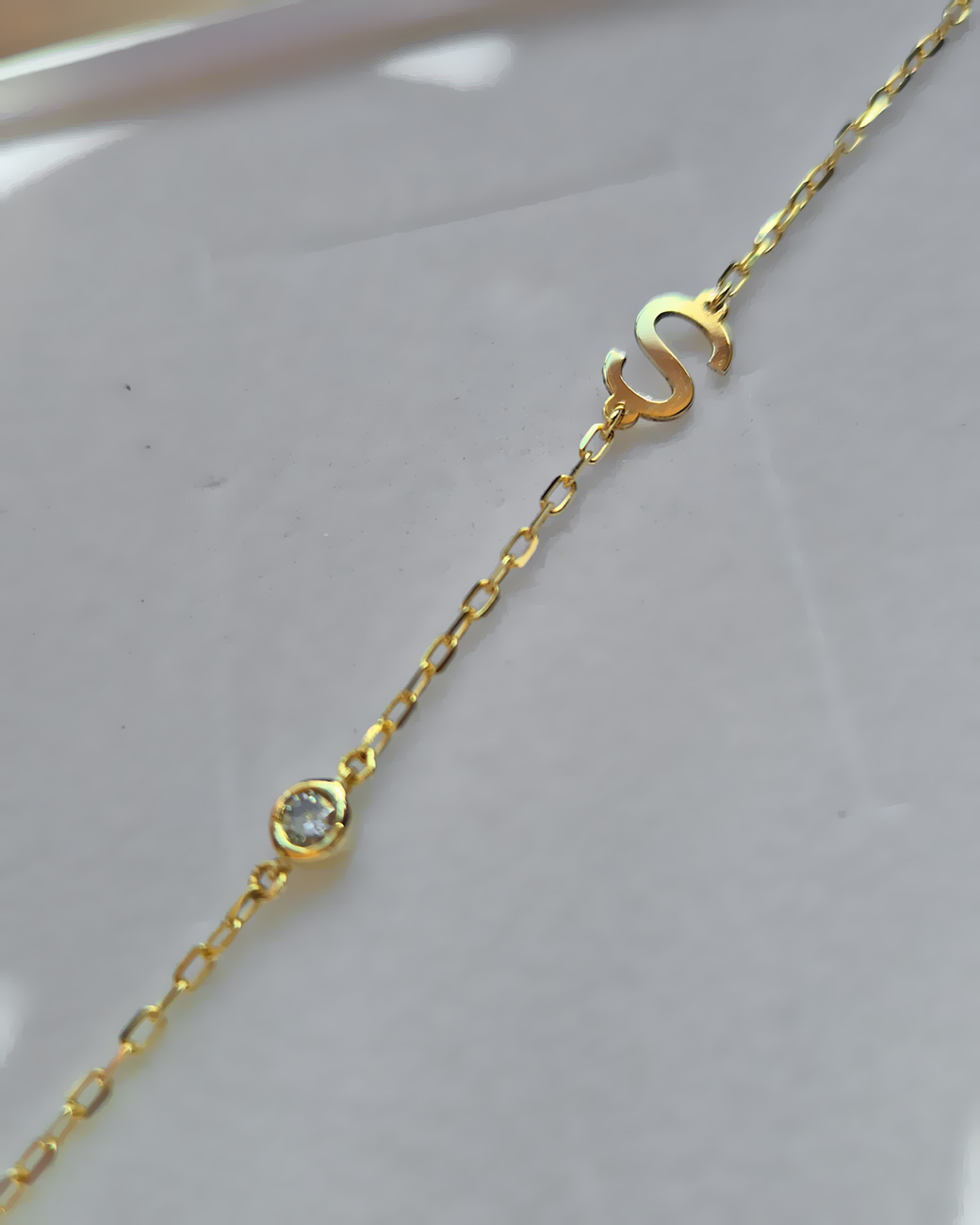 Zlatá retiazka s písmenom veľkosť písmena 7mm, hrúbka 0,5mm.