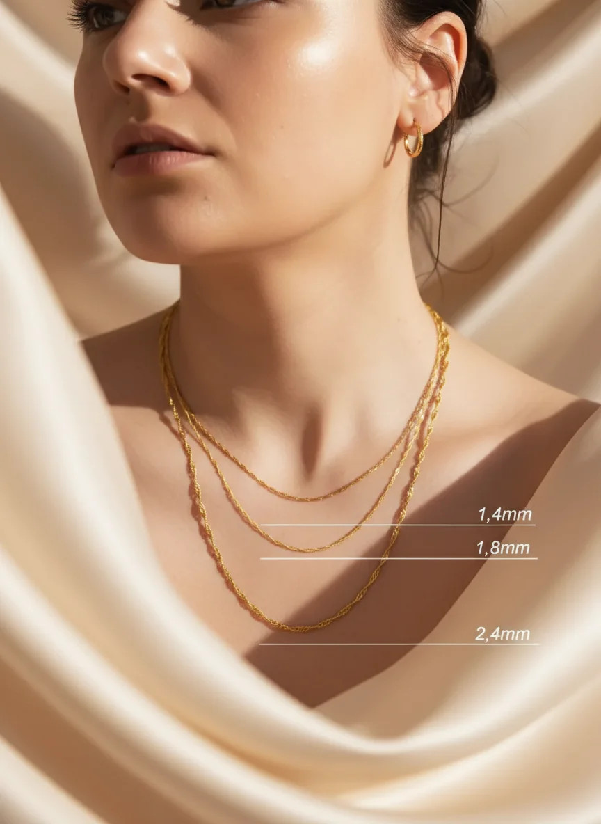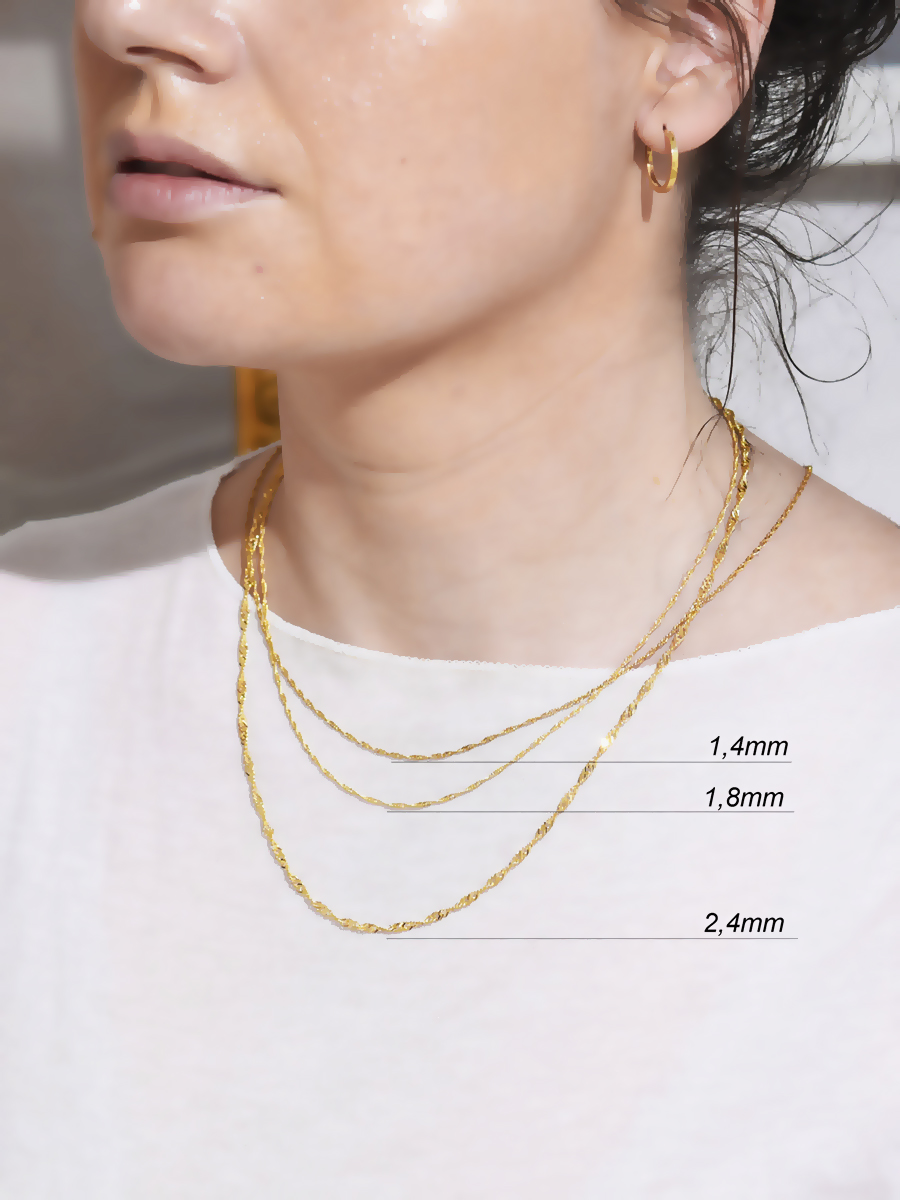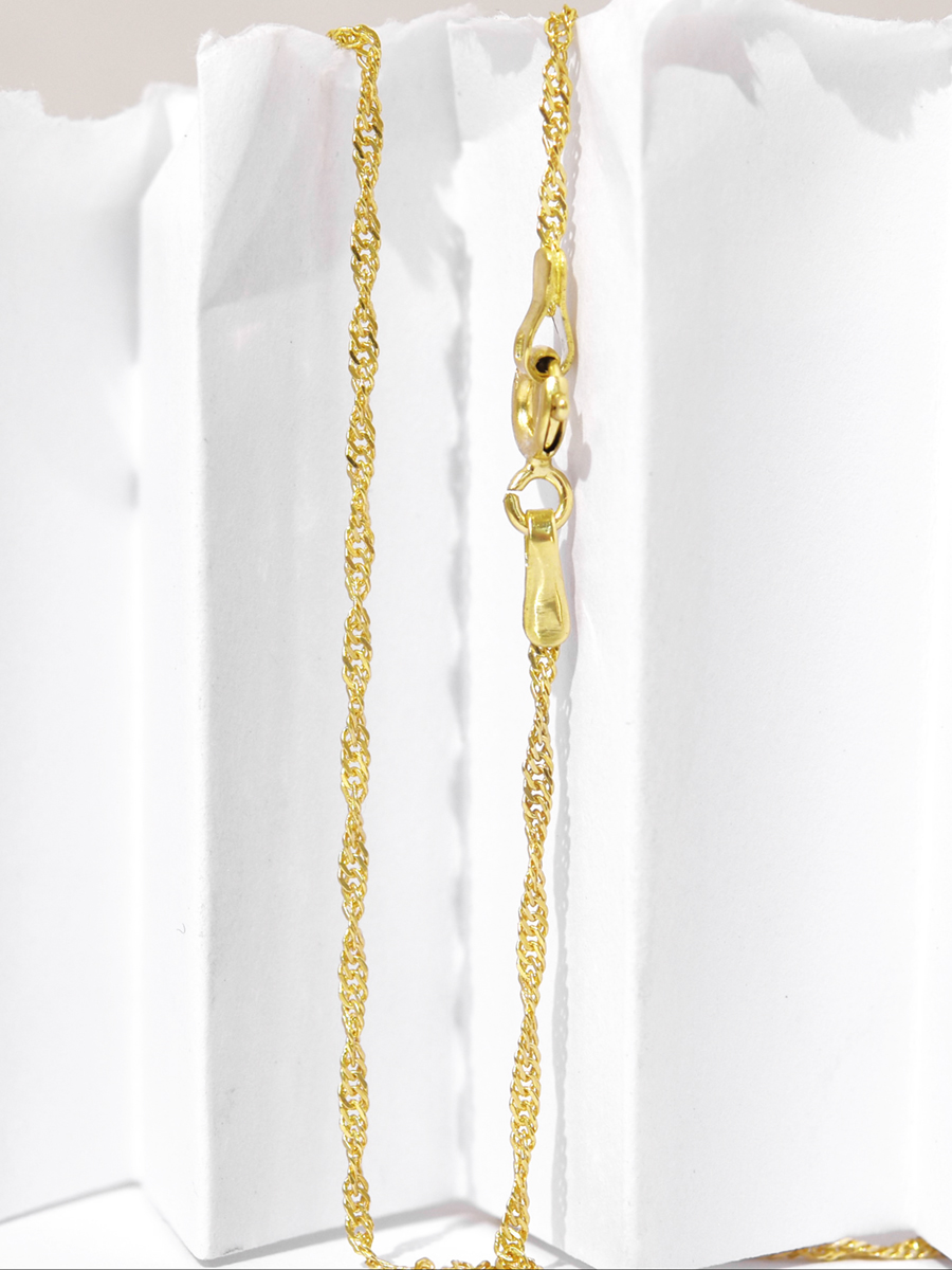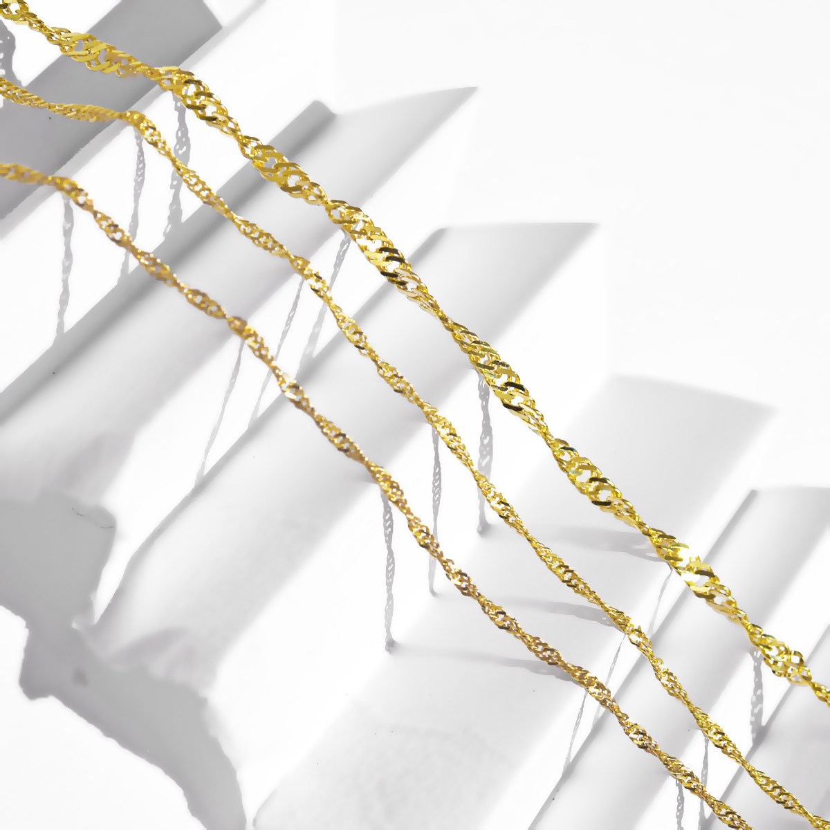 Retiazka má mierne točený dizajn, čo vytvára zaujímavé odlesky.