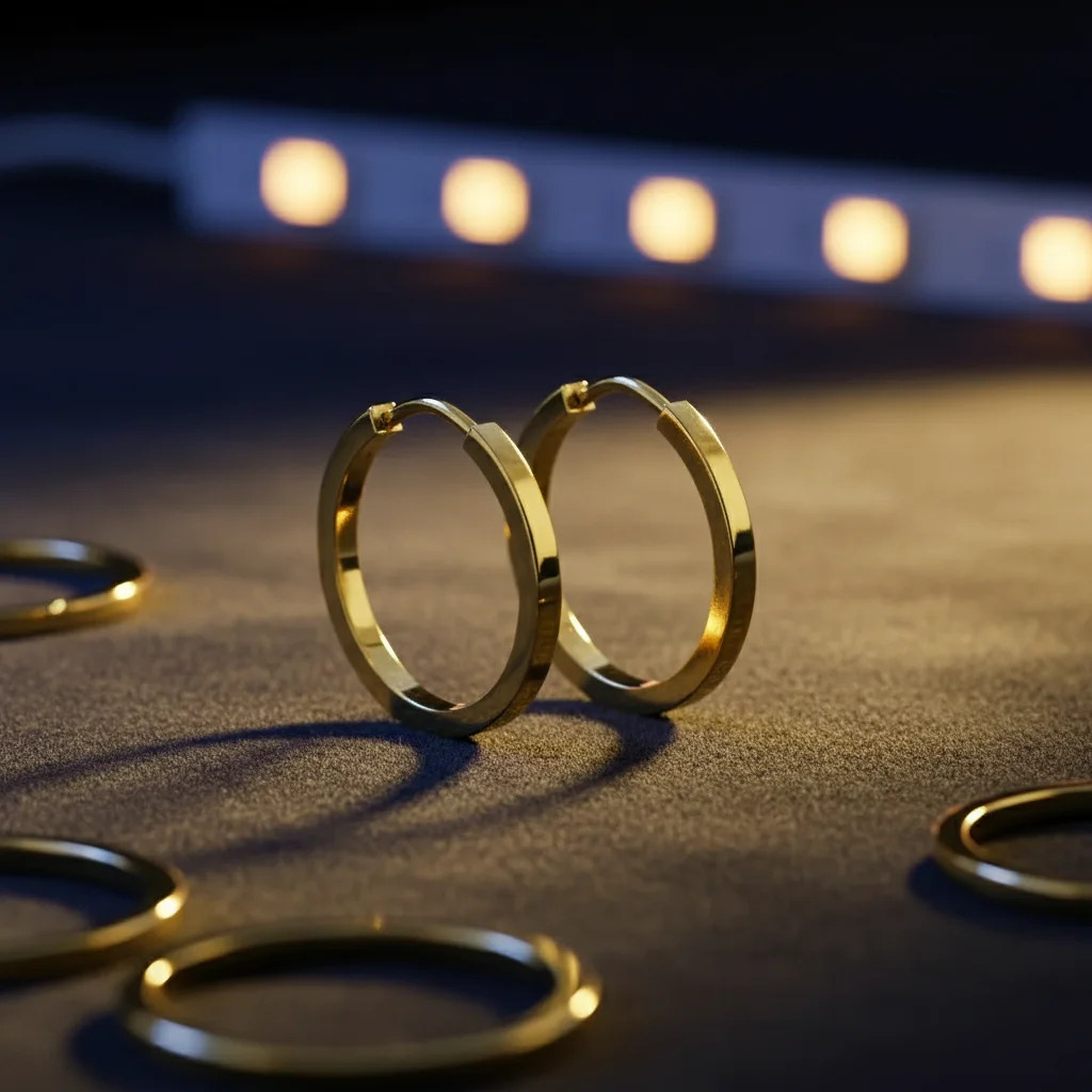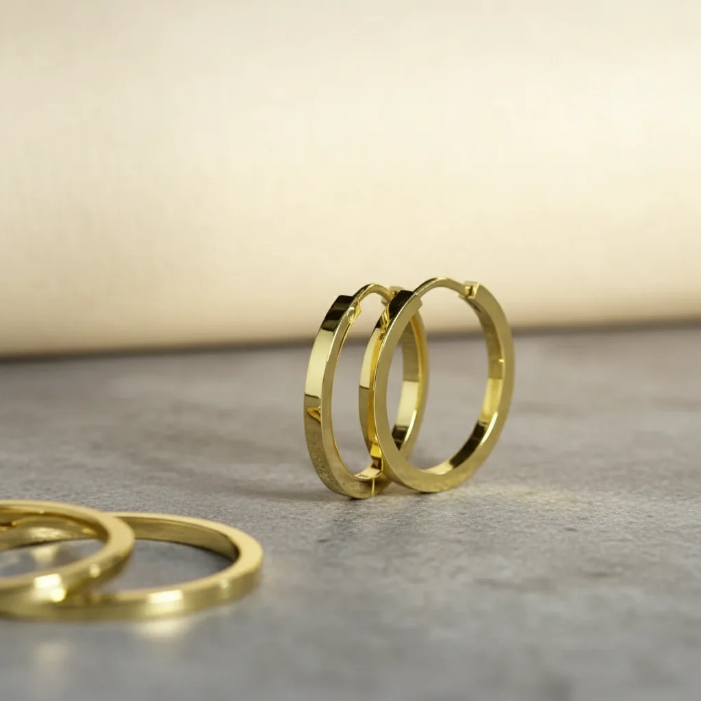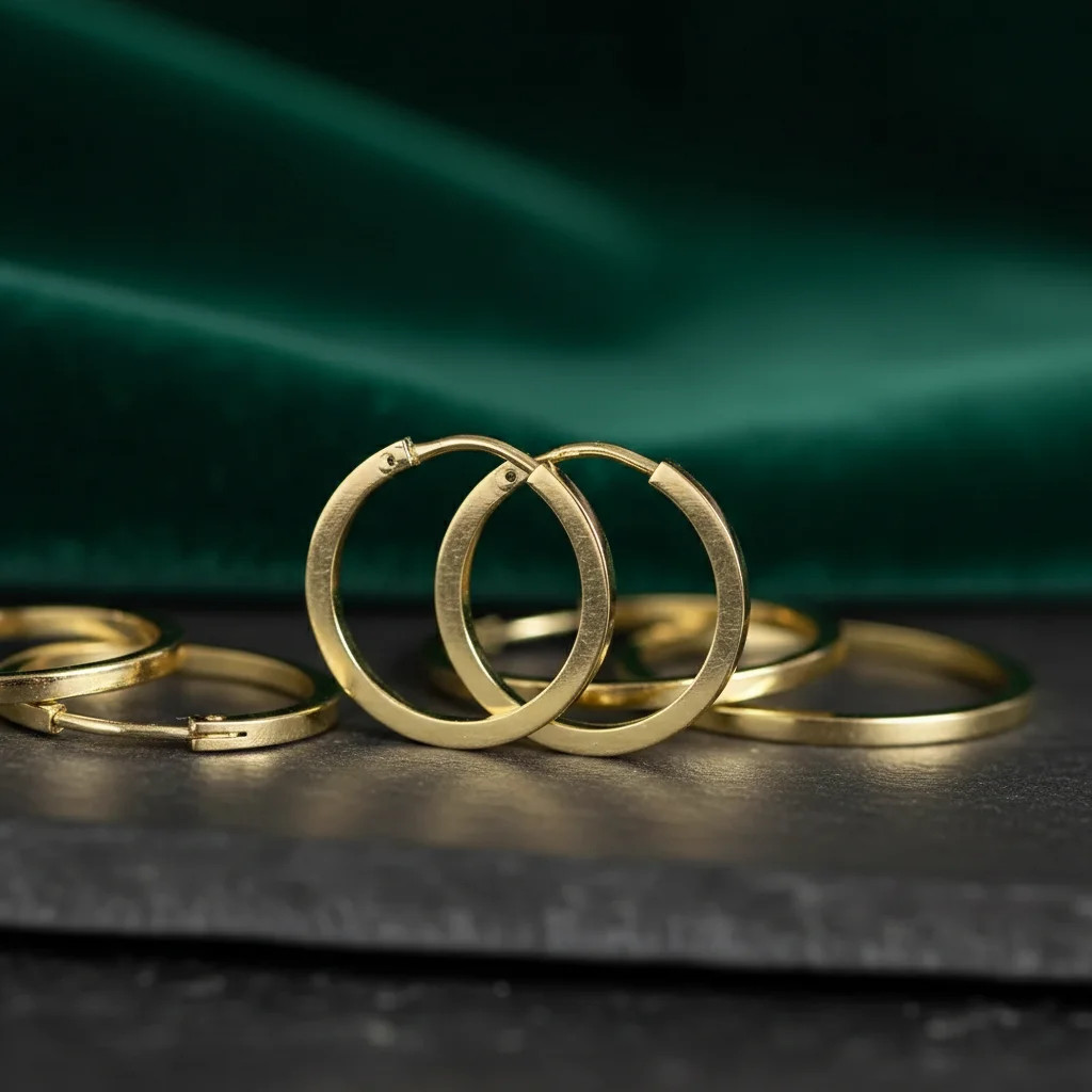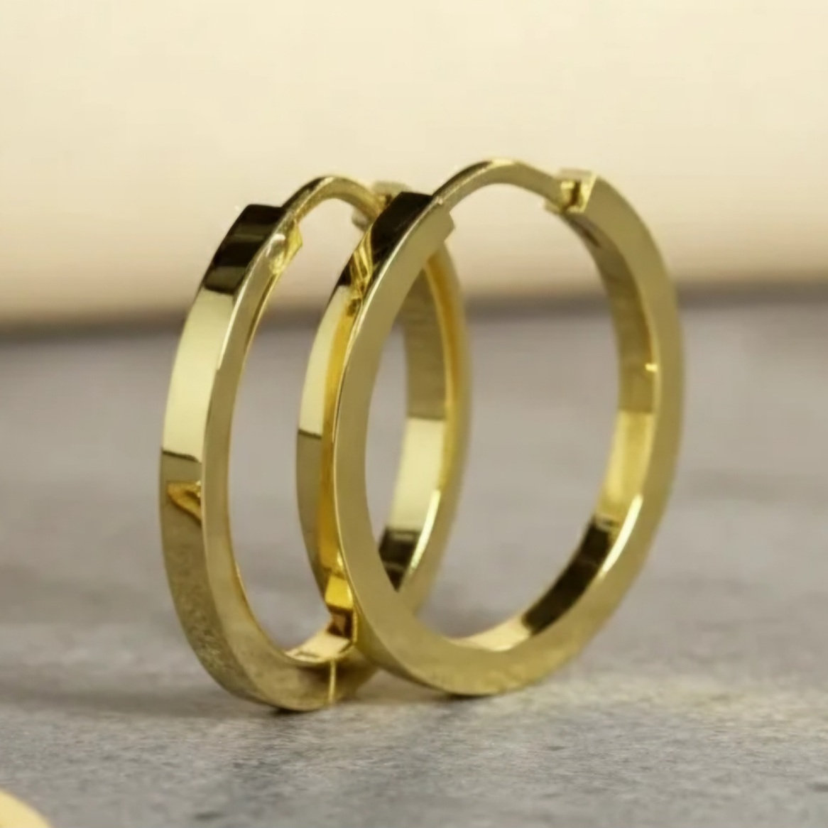 Šírka 18mm. Hrúbka steny 0,3mm. Samozrejme sú duté, plné by boli ťažké na ucho a prieľmi ho zaťažovali, ale hrúbka steny je natolko masívna, ž v týchto náušniciach môžete aj spávať.