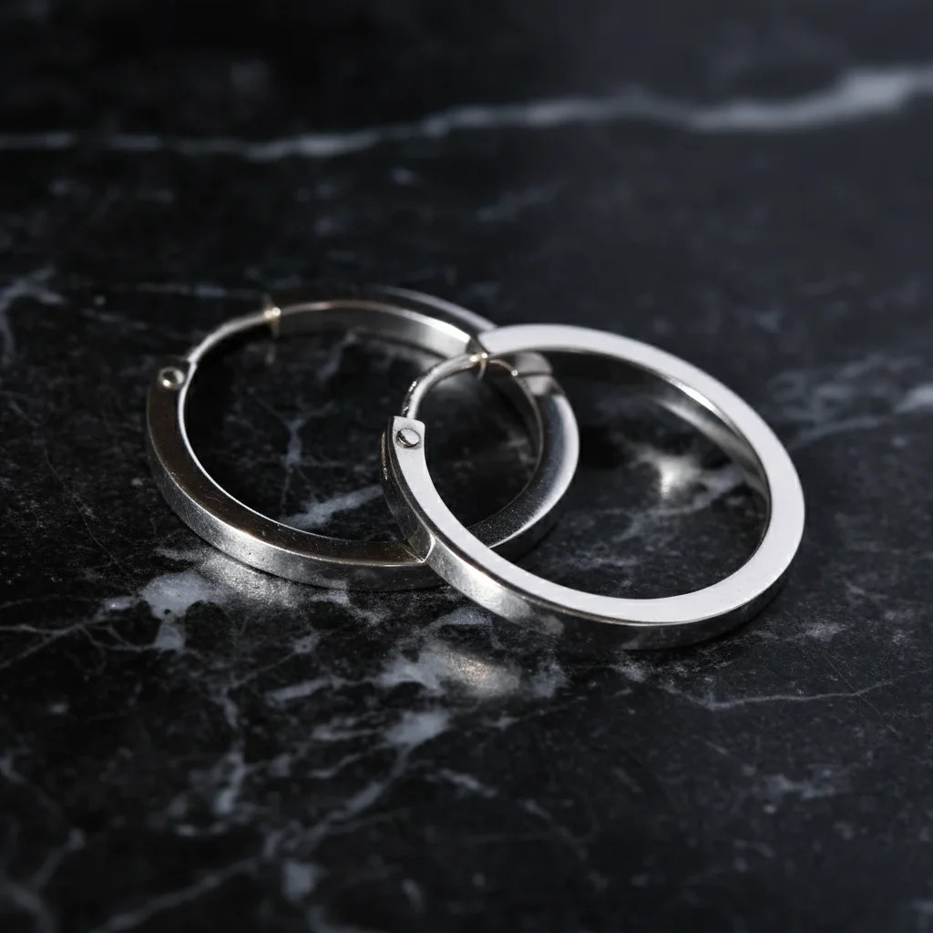 Šírka 18mm. Hrúbka steny 0,3mm. Samozrejme sú duté, plné by boli ťažké na ucho a prieľmi ho zaťažovali, ale hrúbka steny je natolko masívna, ž v týchto náušniciach môžete aj spávať.