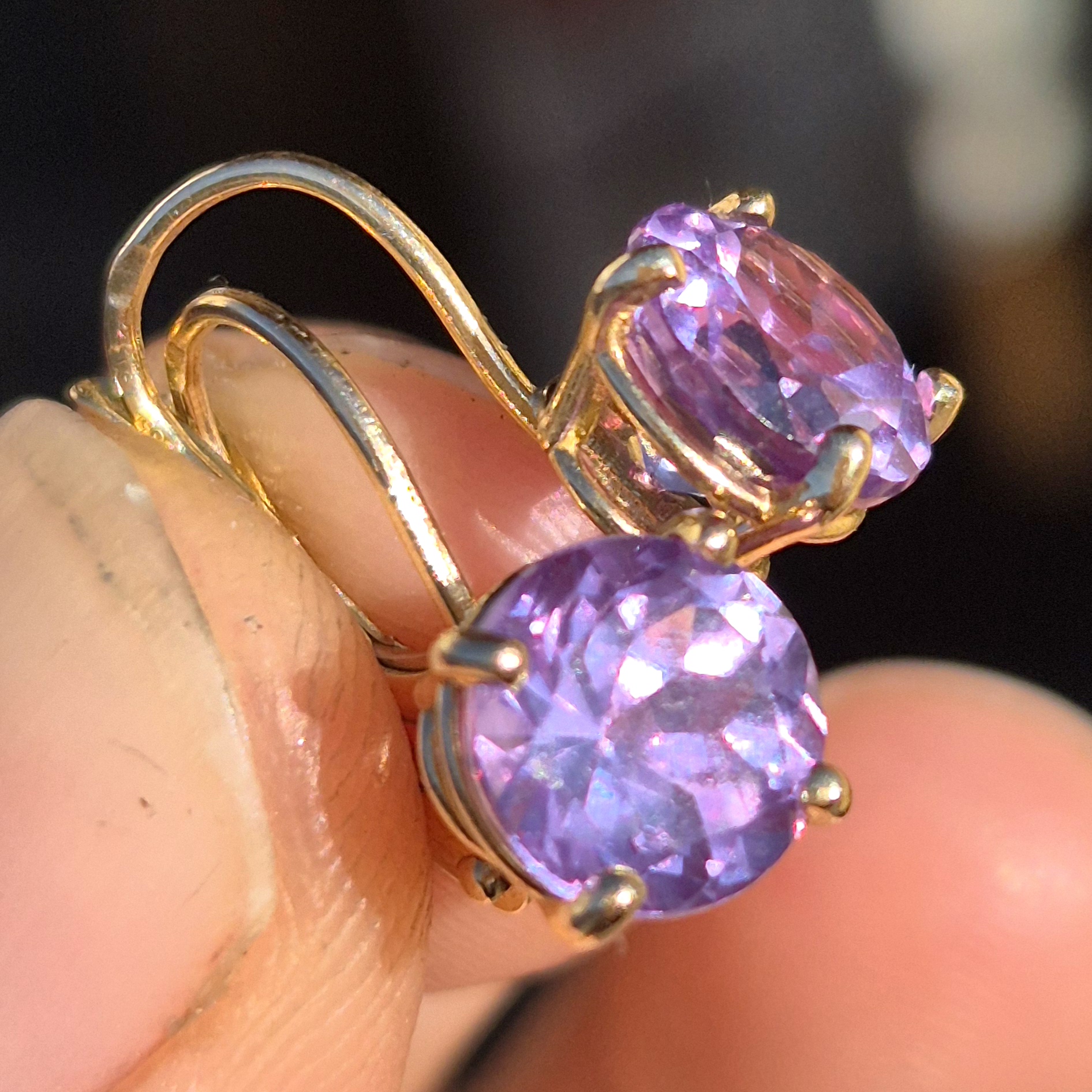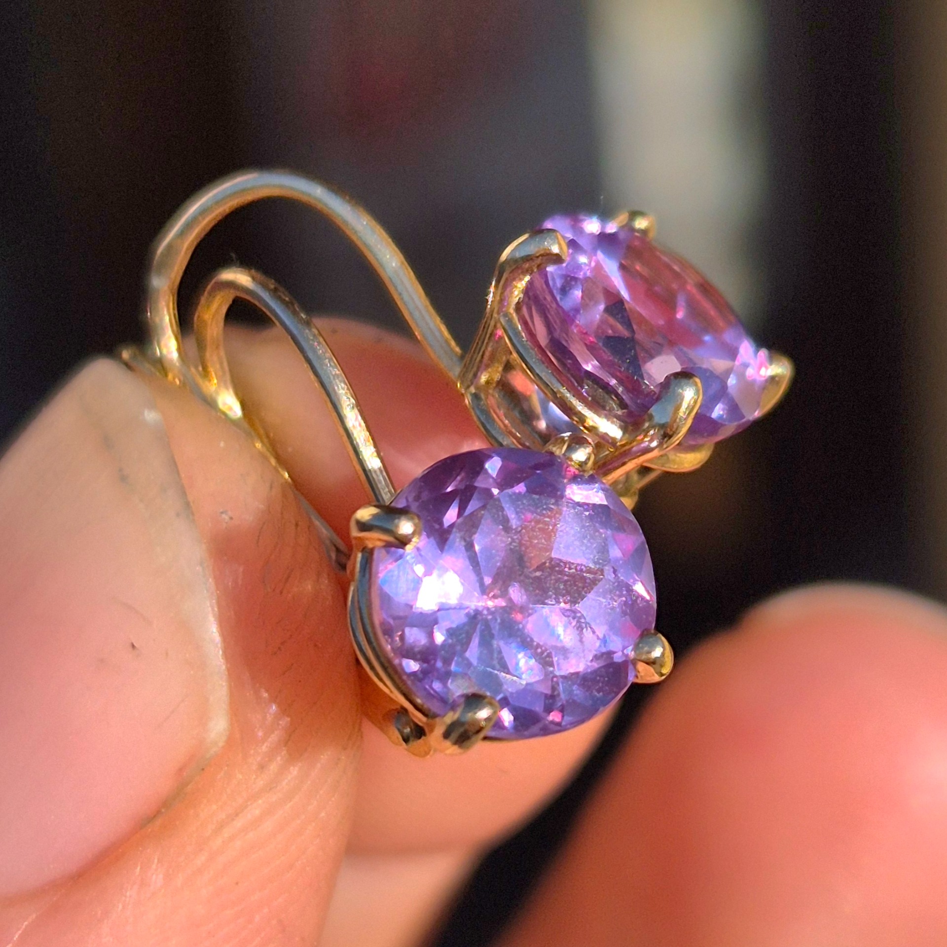 Zlaté náušnice s Alexandritom.