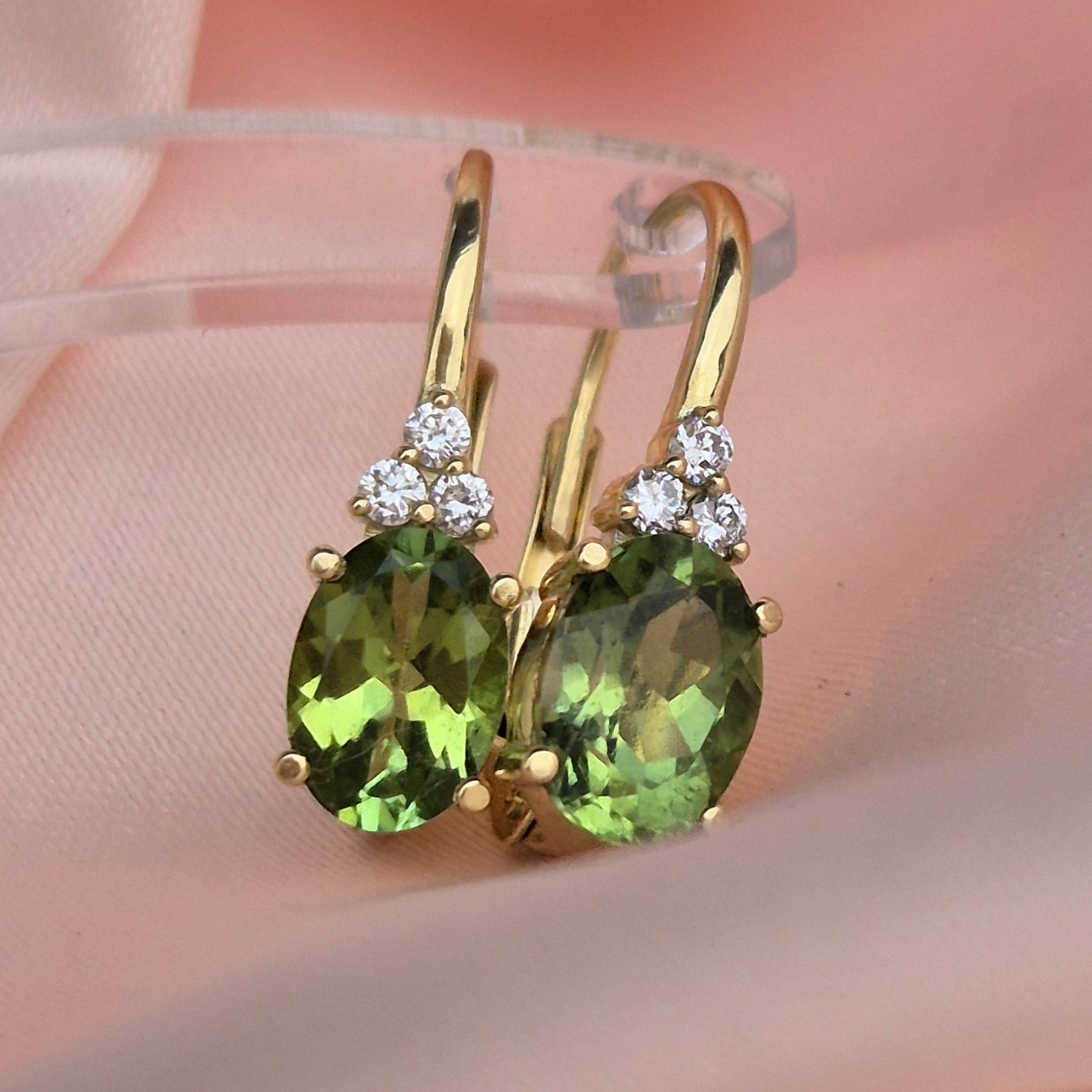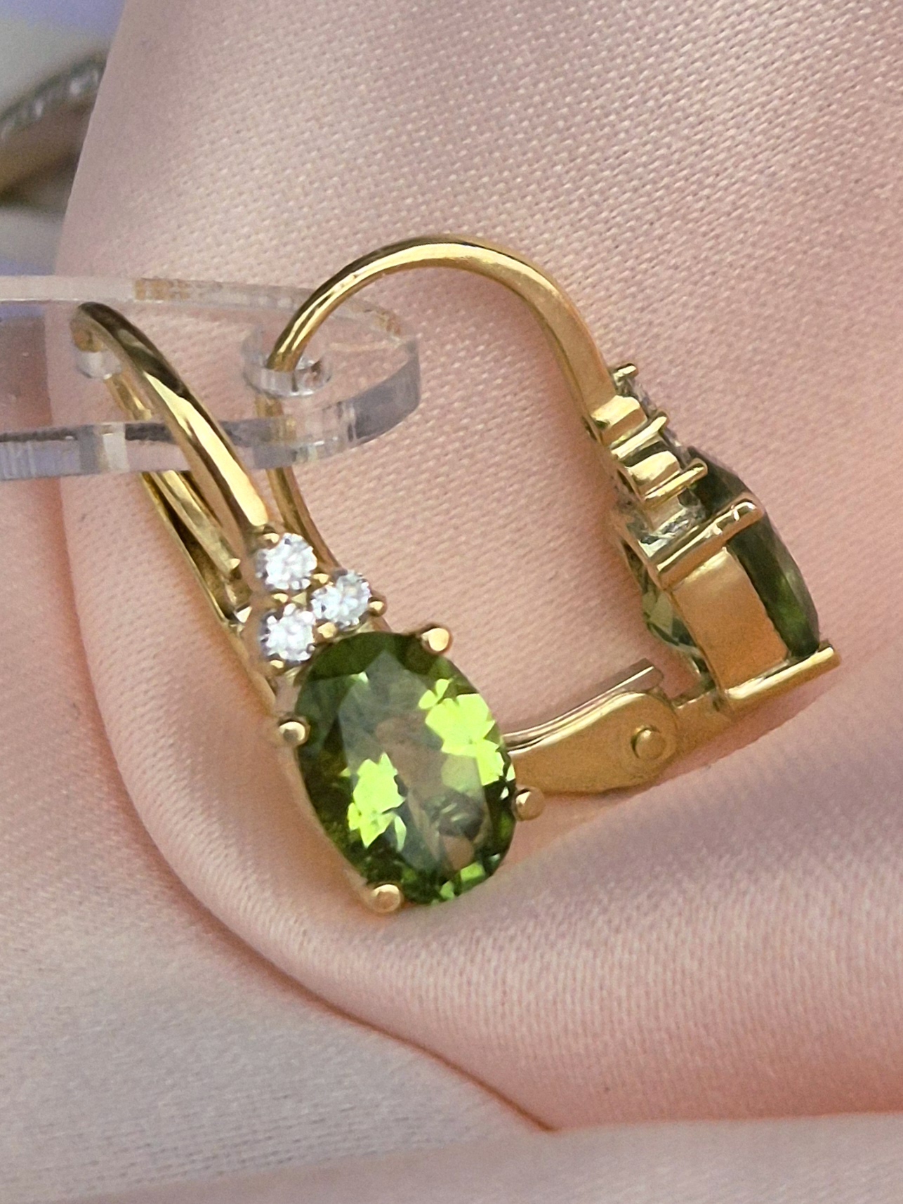 Zlaté náušničky s drahokamom Turmalín veľkosti 7x5mm. a diamantami 1,5mm.
