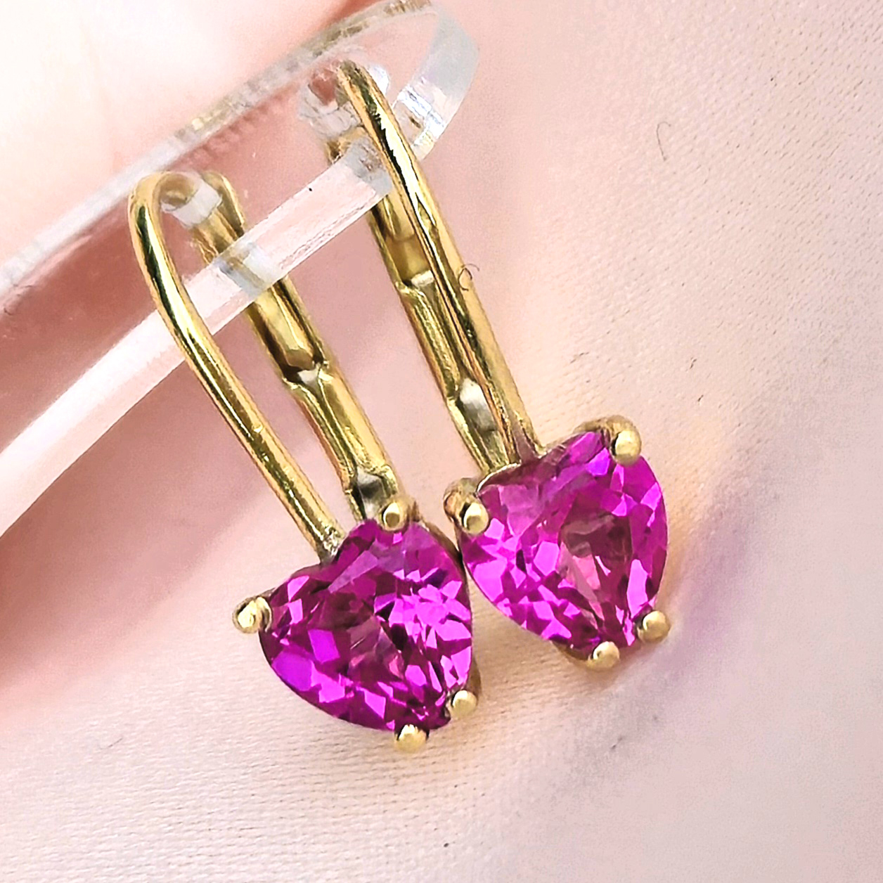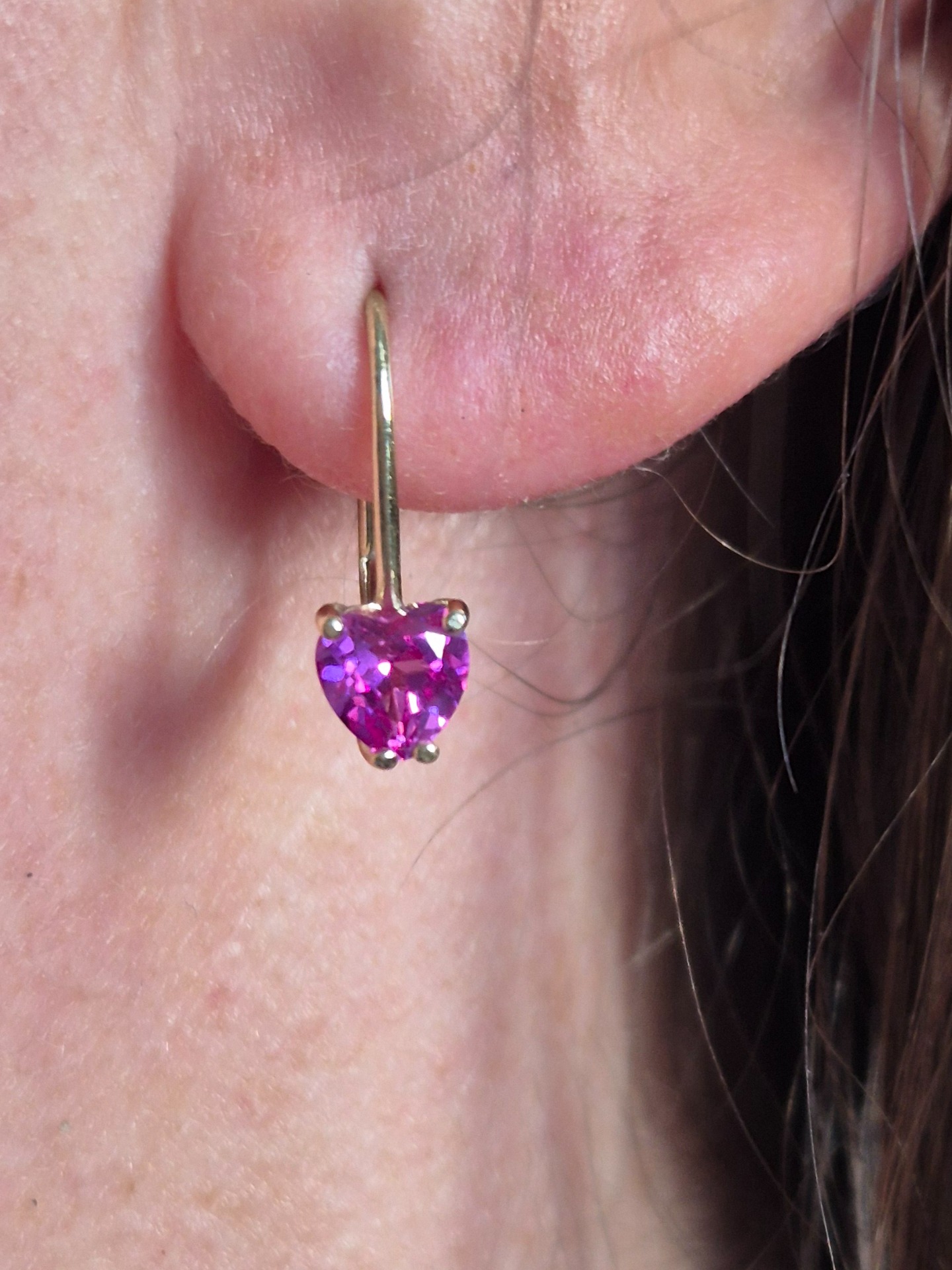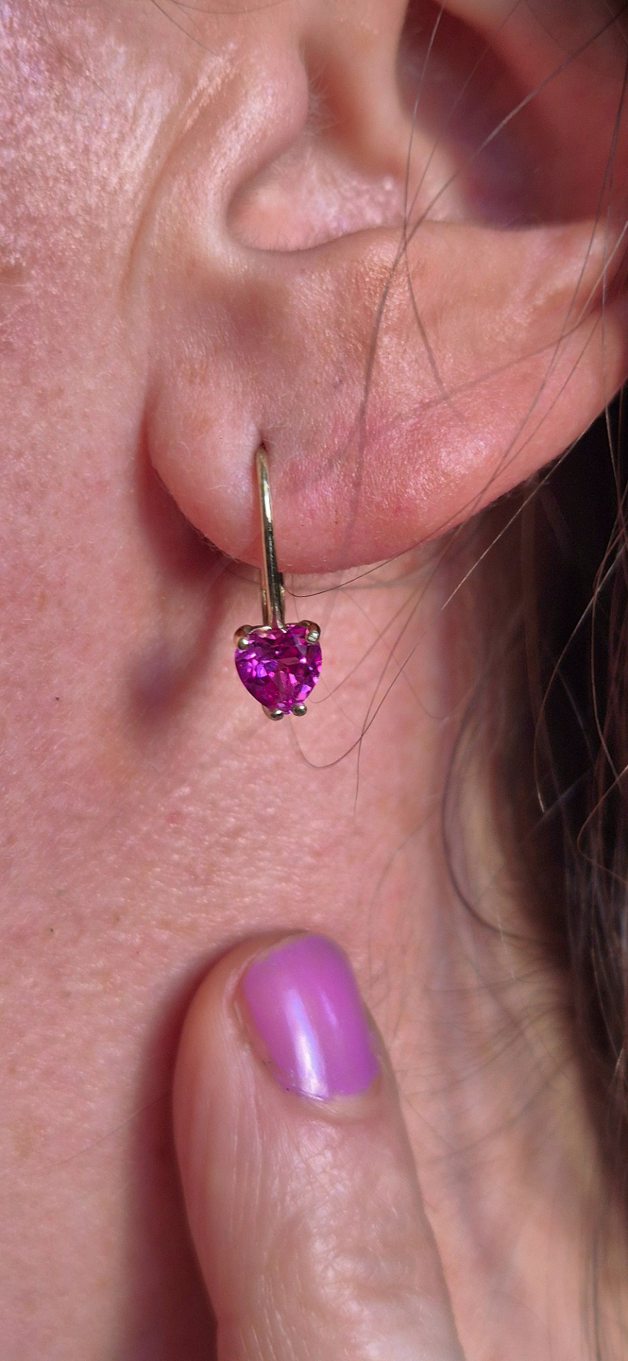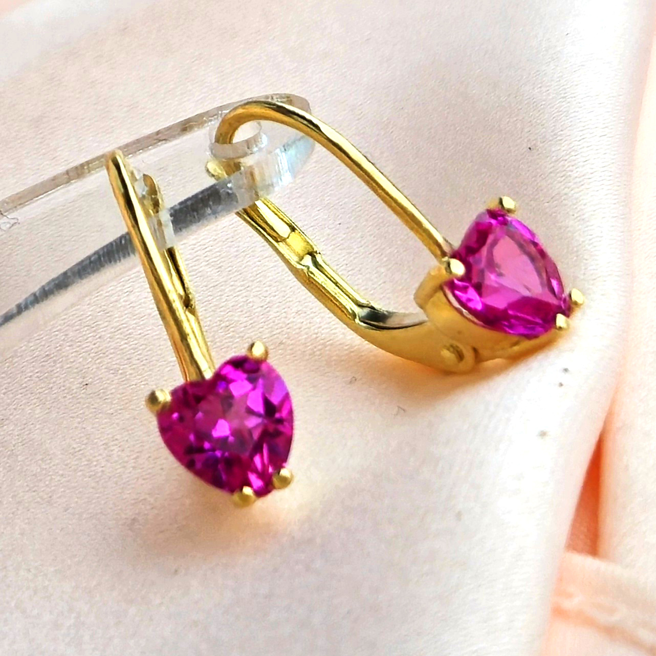 Zlaté náušnice s ružovým Rubínom v tvare srdiečka.
