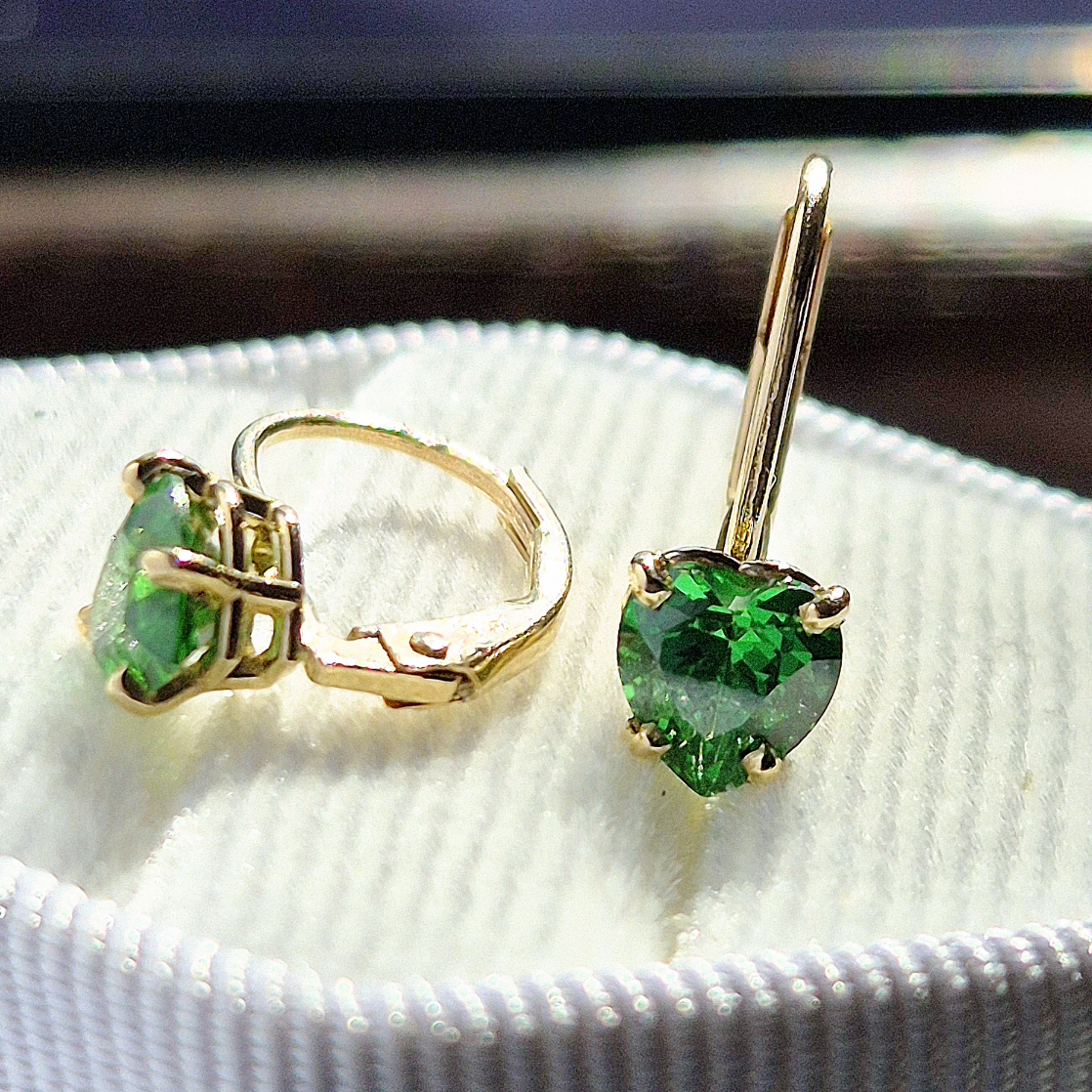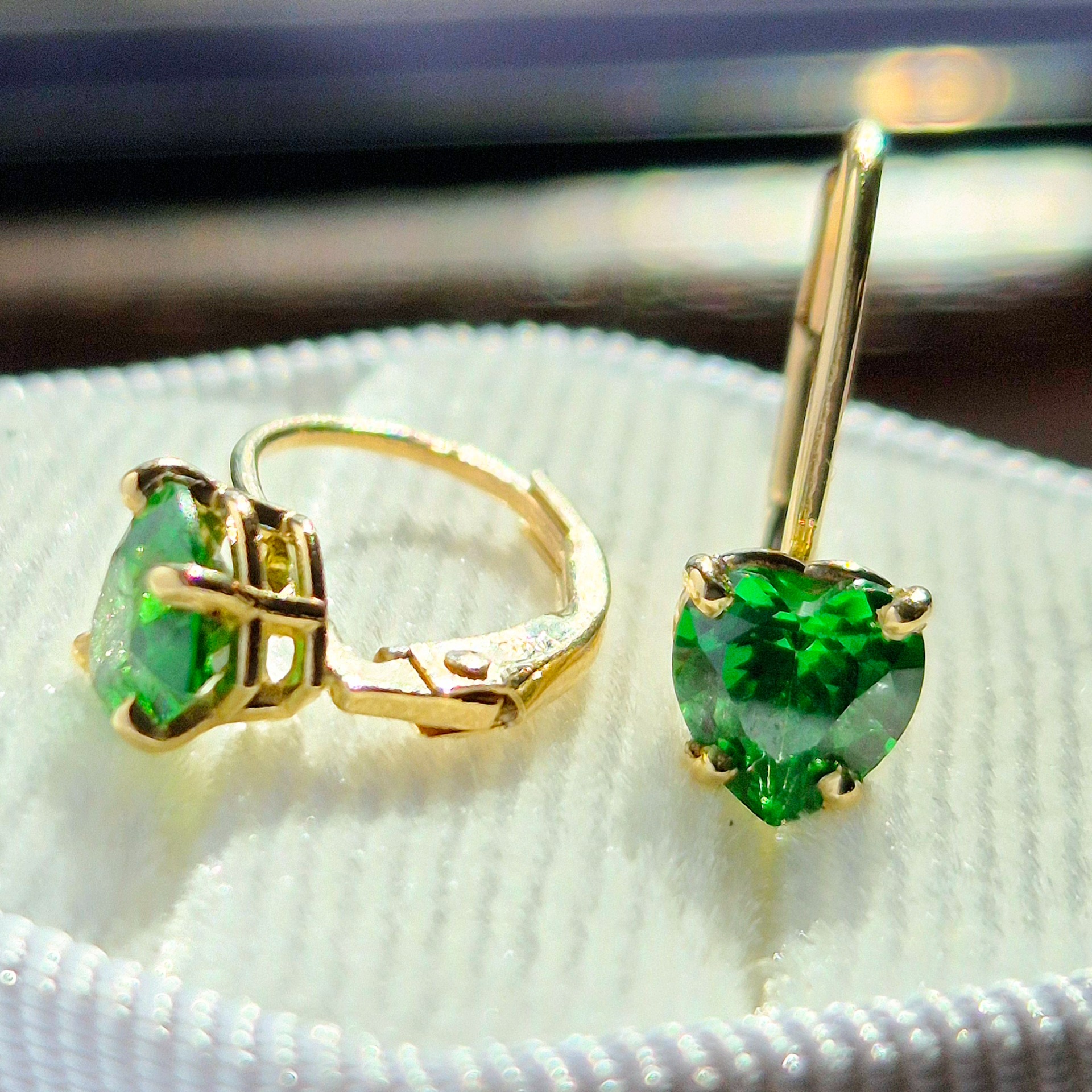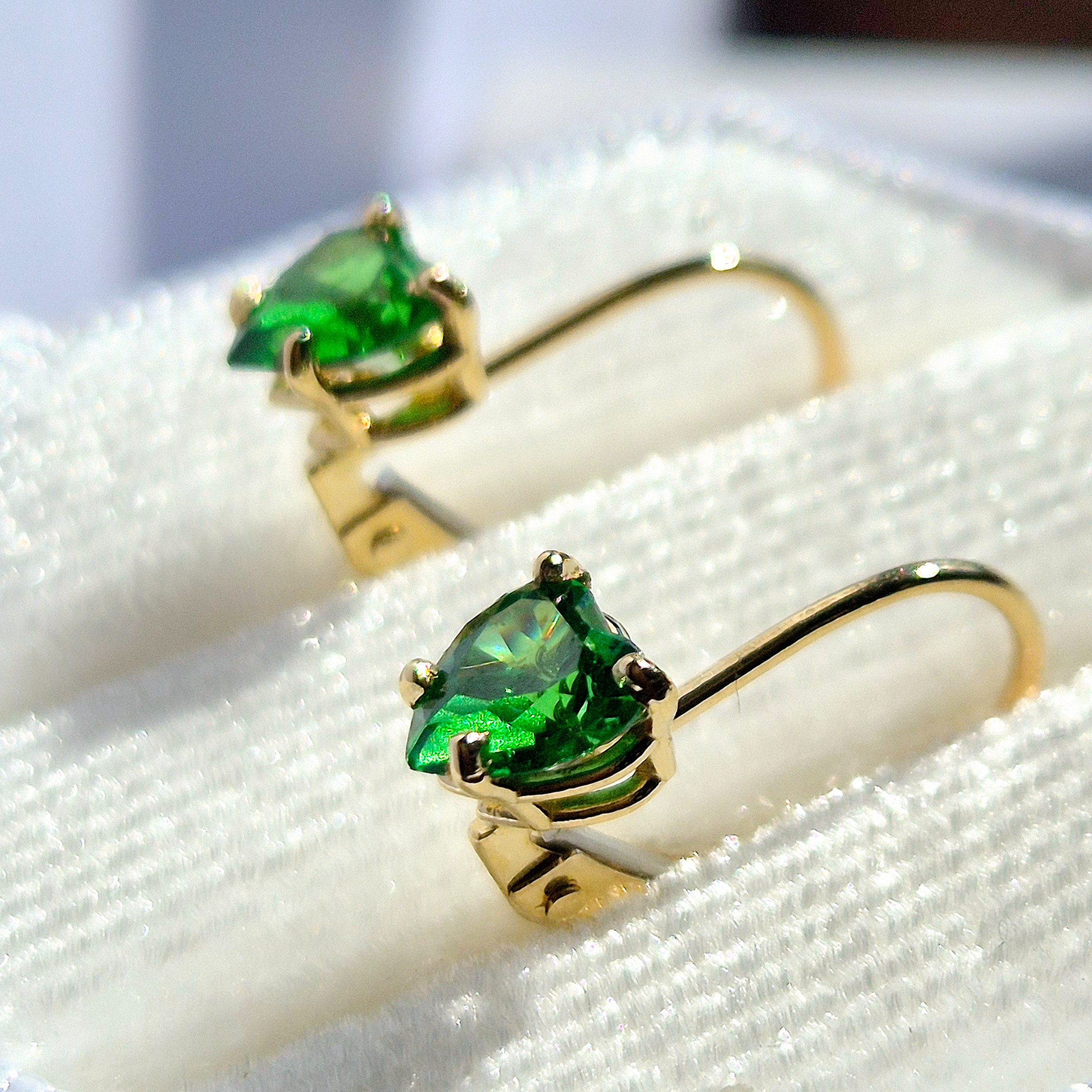 Zlaté náušnice so Smaragdom v tvare srdiečka.
