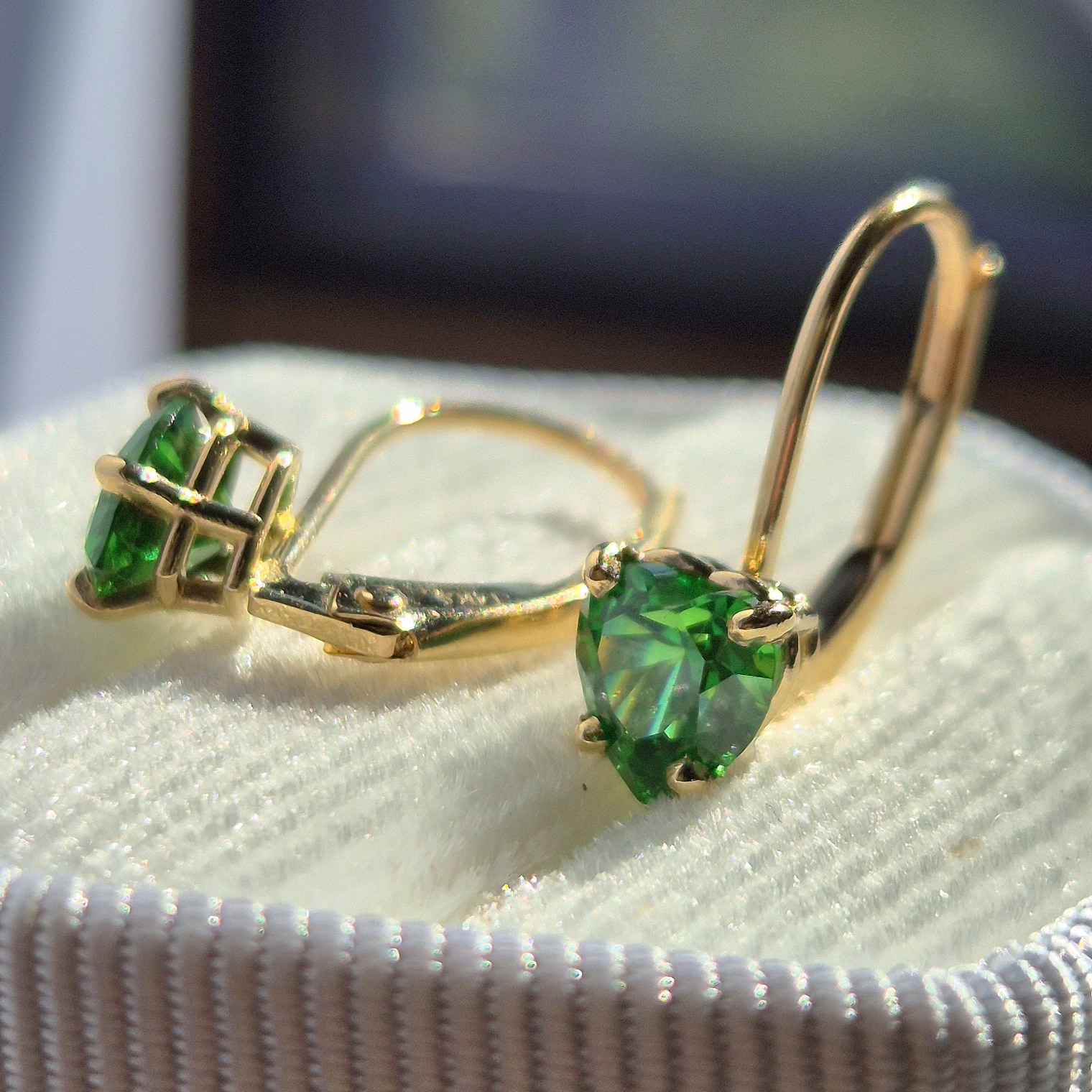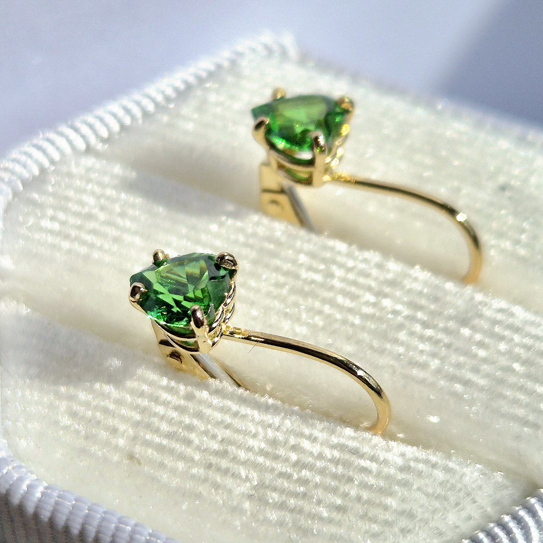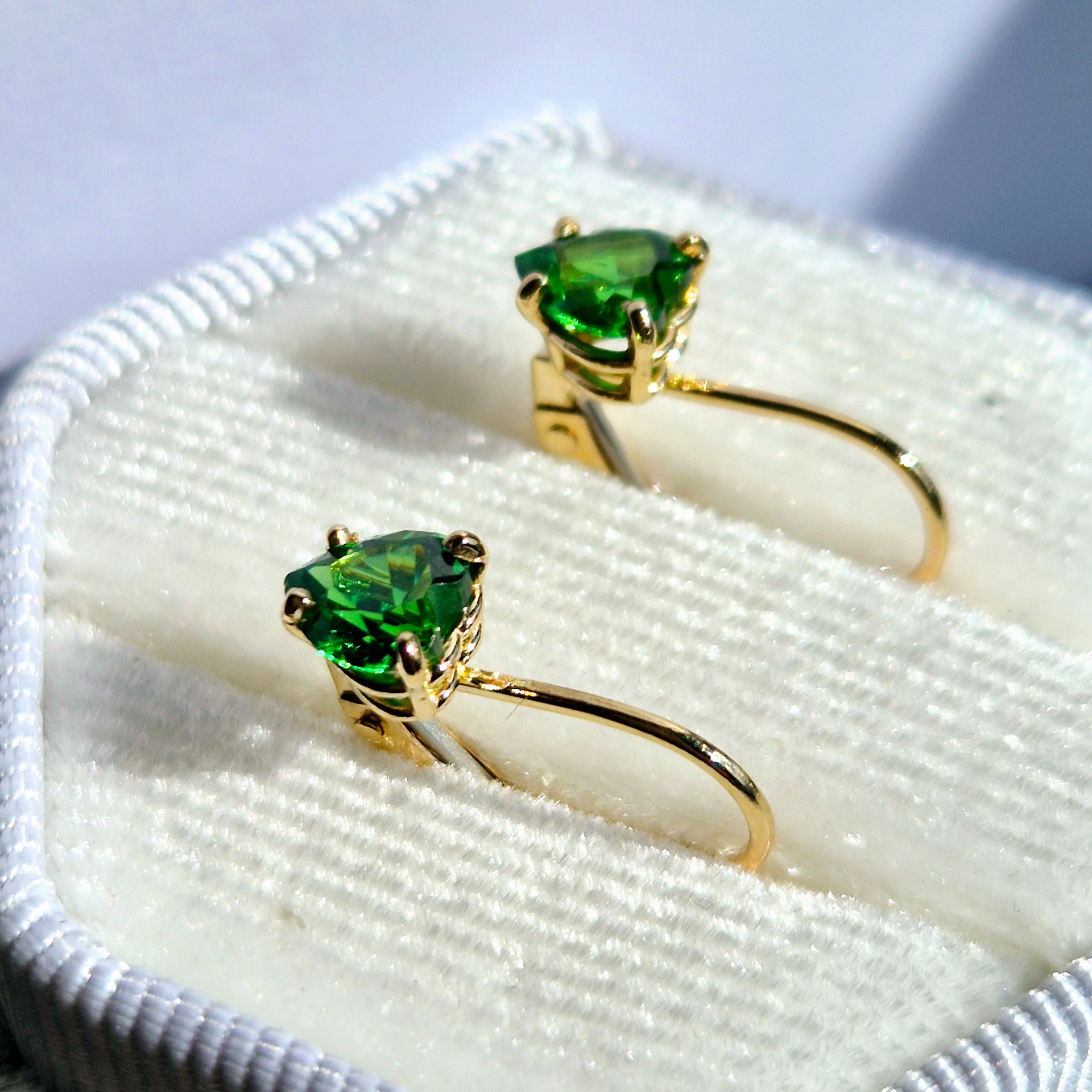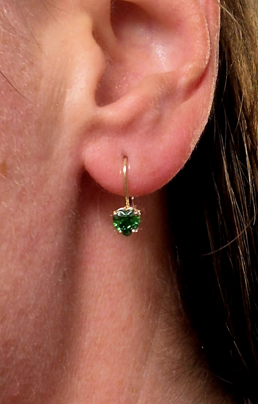 Zlaté náušnice so Smaragdom v tvare srdiečka.