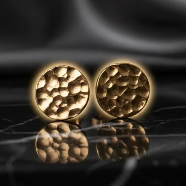 Náušnice majú tepaný povrch, ktorý zaujímavo odráža svetlo.