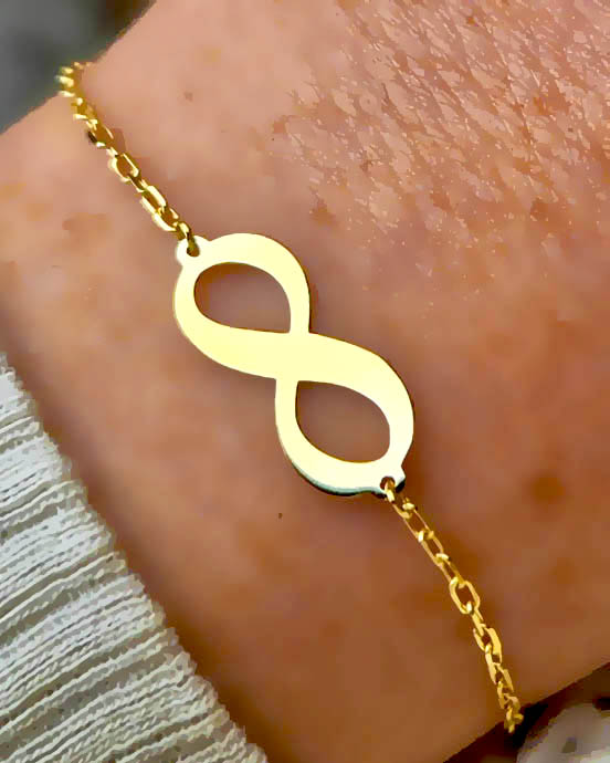 Zlatý náramok s nekonečnom na ktoré je možné gravírovať.