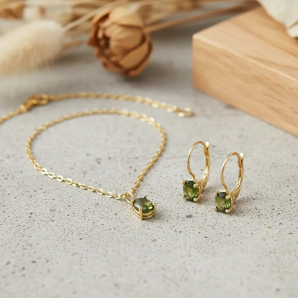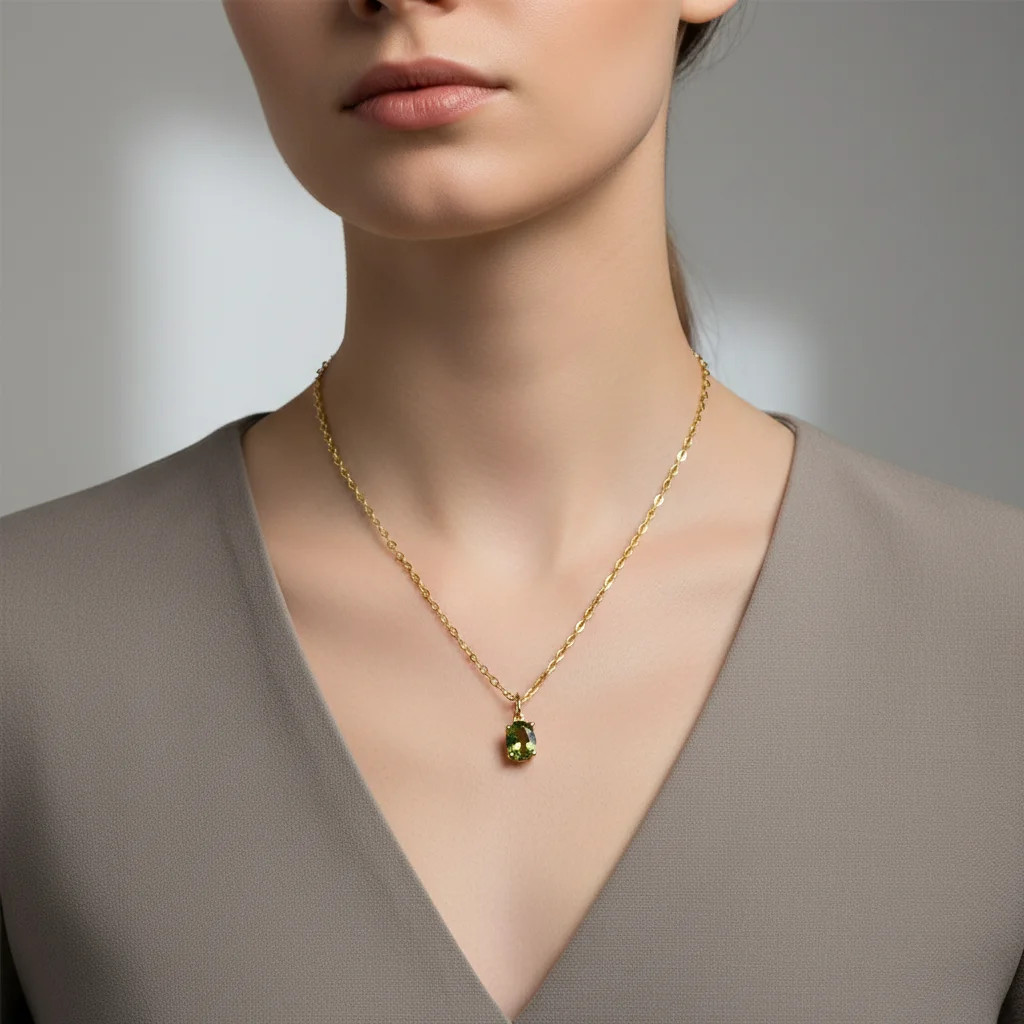Zlatý prívesok s polodrahokamom zeleným Turmalínom.