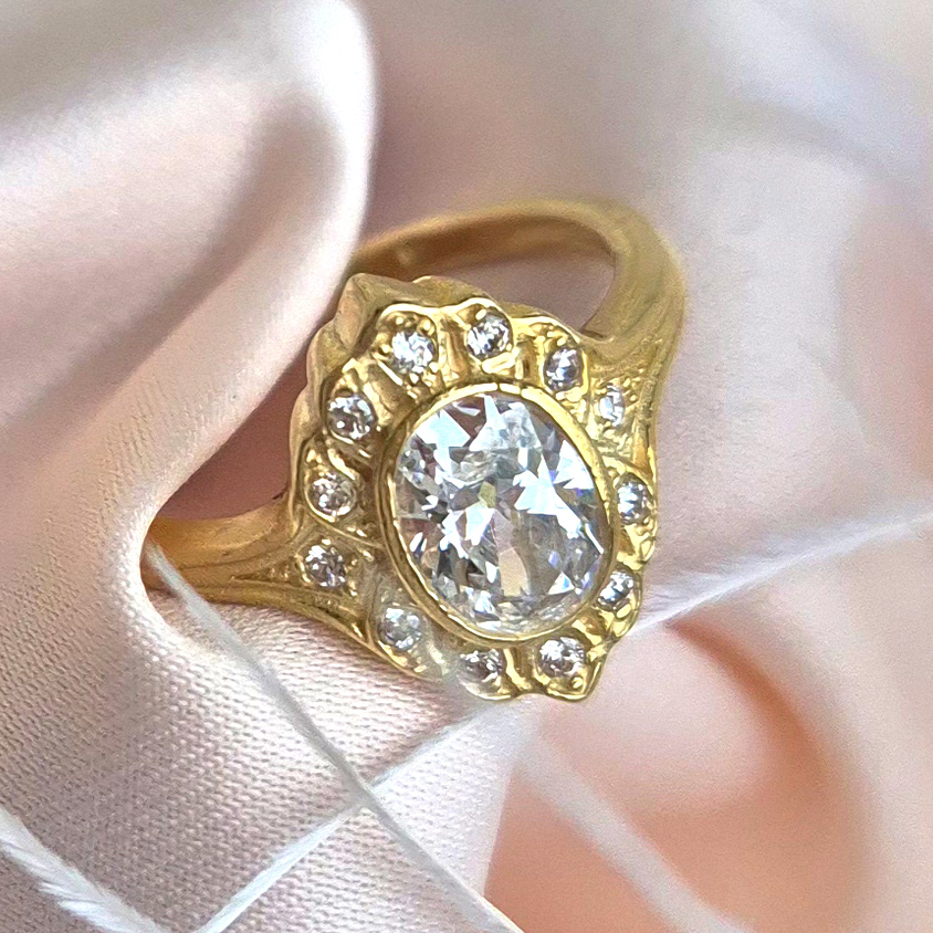 Zlatý prsteň, kamienky sú zirkóny.Výška hviezdy je 16mm.