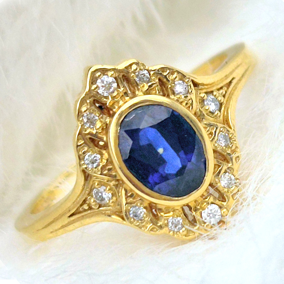 Zlatý prsteň s centrálnym kameňom tmavomodrý Zafír.