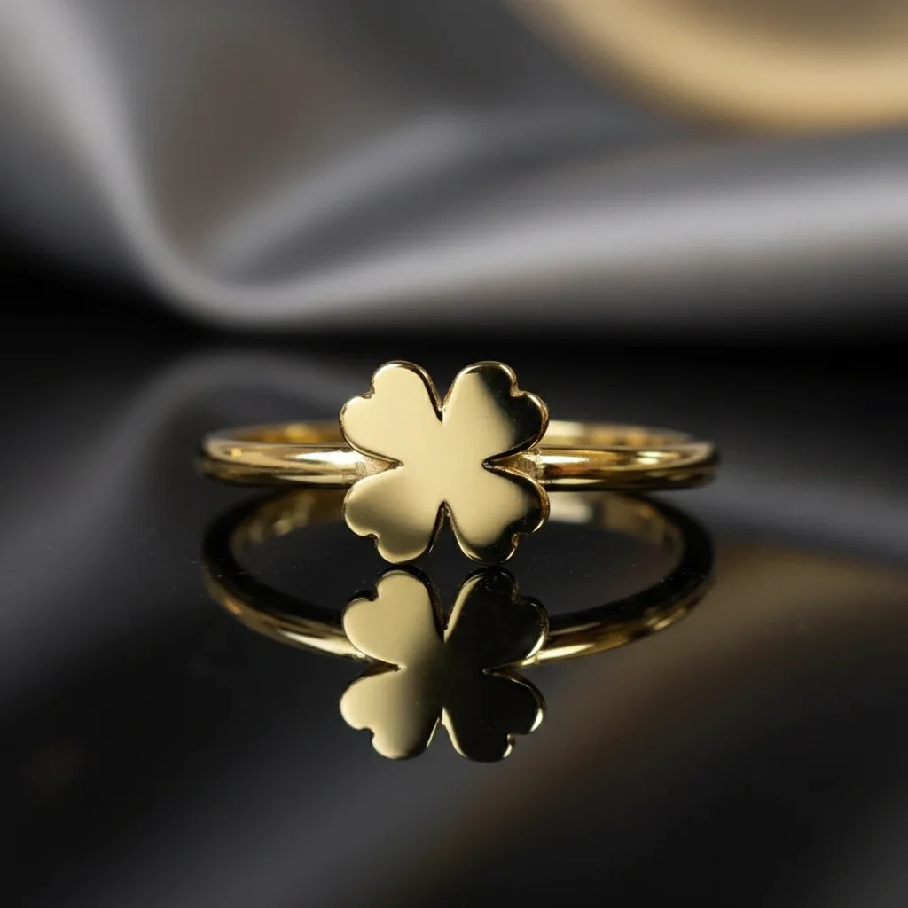 Zlatý prstienok so štvorlístkom vieme vyrobiť v žltom, ružovom alebo bielom 14 karátovom zlate.