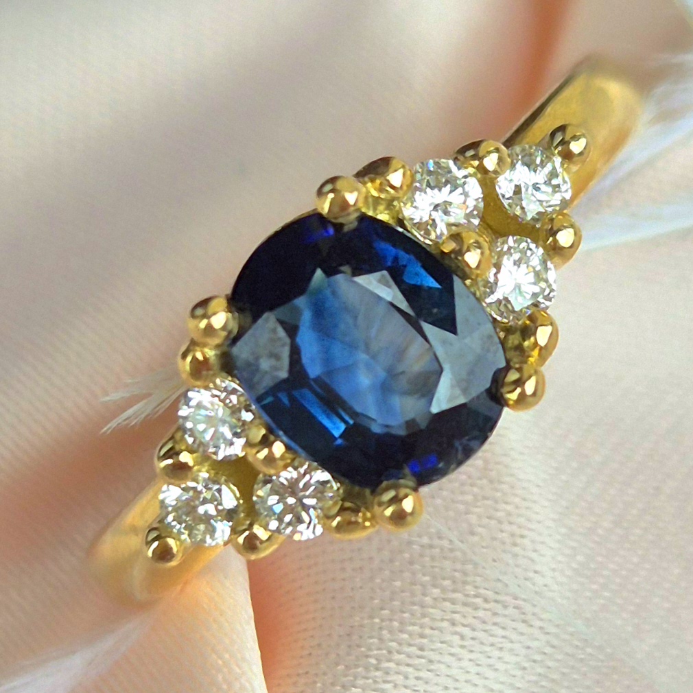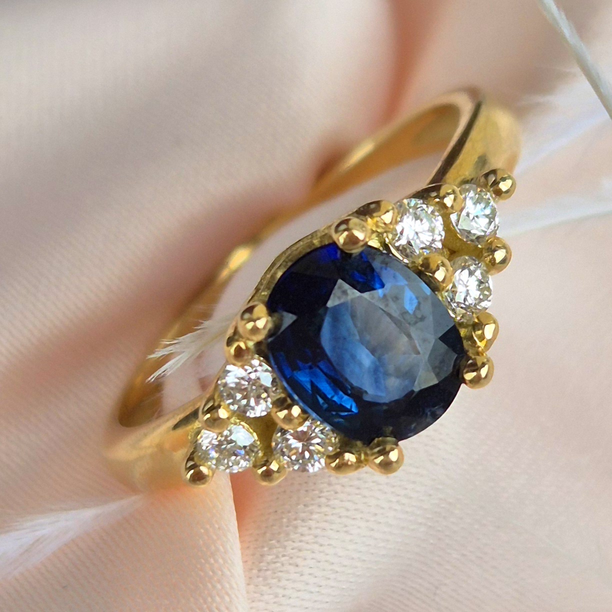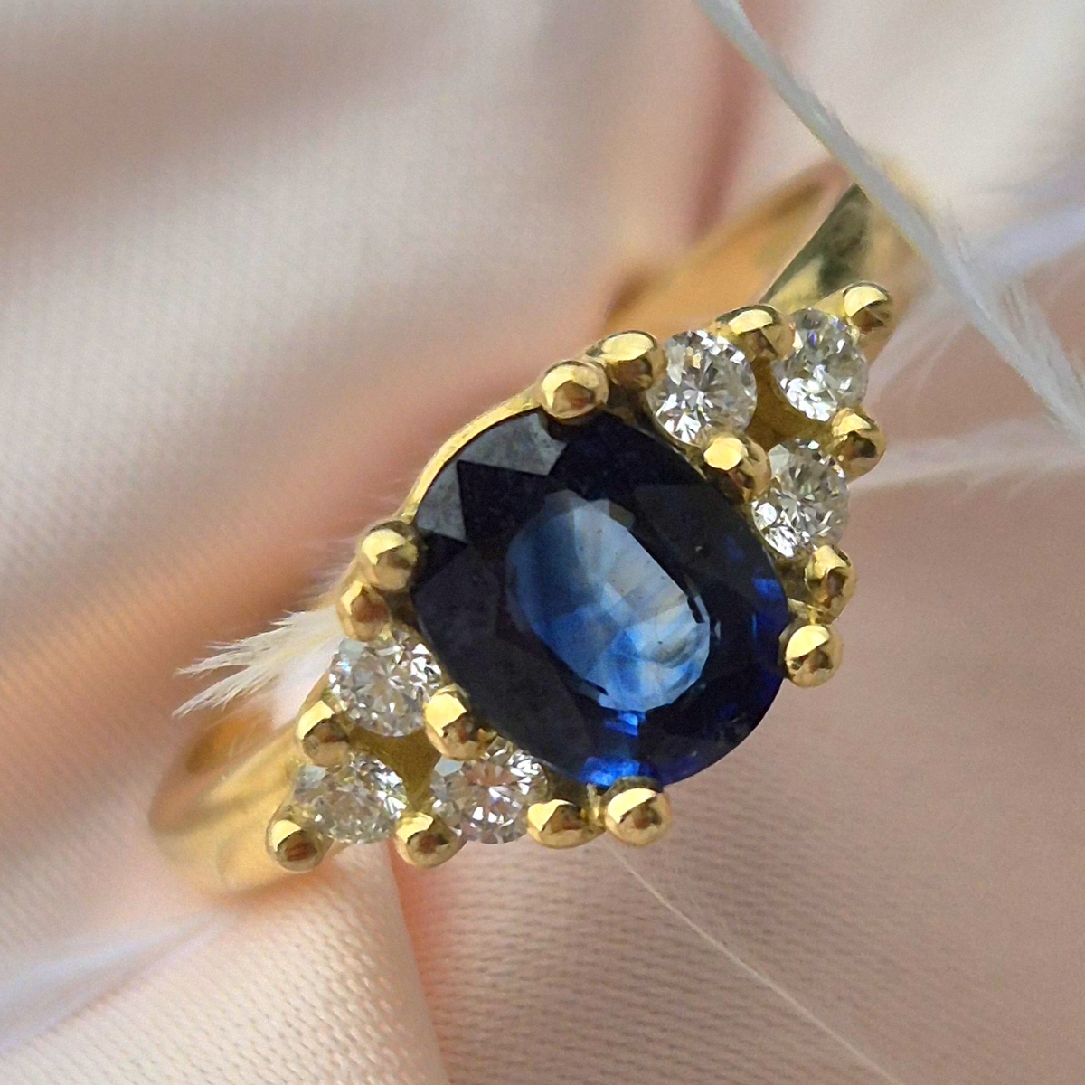 Snubný prsteň s centrálnym kameňom drahokamom - modrý zafír. Po stranách sú diamanty veľkosti 2mm 6ks.